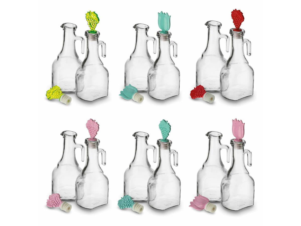 Zestaw 2 szklanych butelek na oliwę o pojemności 250 ml każda marki Tadar. Szkło doskonale nadaje się do przechowywania oliwy lub octu. Chroni wartości odżywcze, a mniejsza pojemność pozwala na wygodne dozowanie.Butelki pomogą sprawnie przygotować sosy do sałatek czy doprawić inne domowe dania.