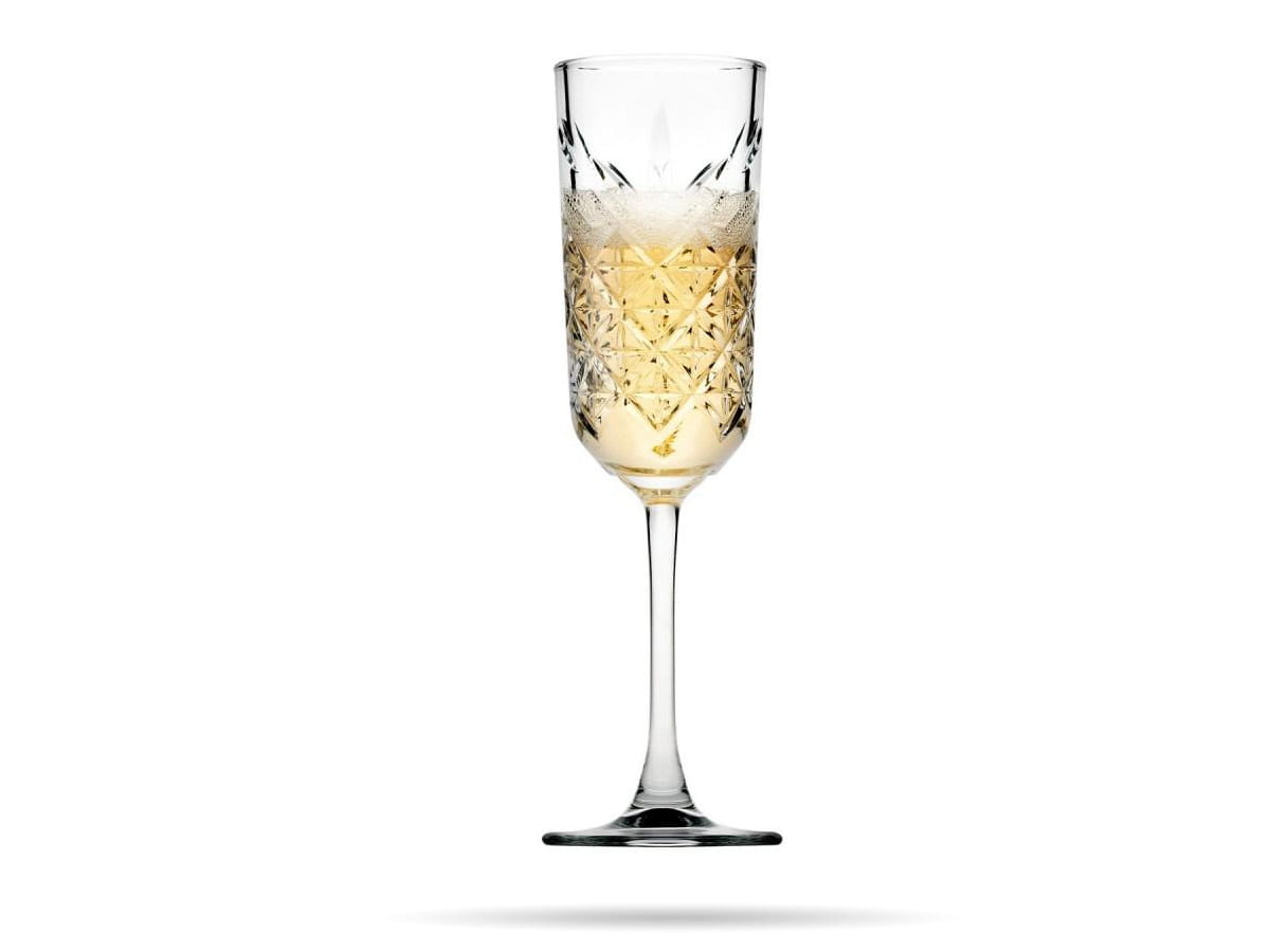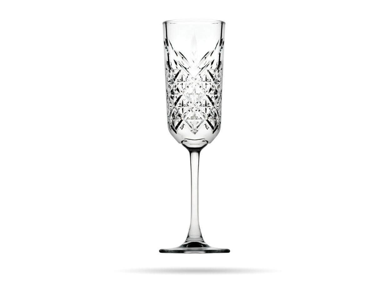 Kieliszki Timeless Pasabahce. Timeless to seria szkła zdobiona ciętym wzorem przypominającym kryształ. Kieliszki do szampana. Pojemność 175 ml. Wysokość 22,5 cm. Średnica 6 cm. Można myć w zmywarce. Timeless sprawdzi się zarówno w gastronomii jak i w domowym użytku.
