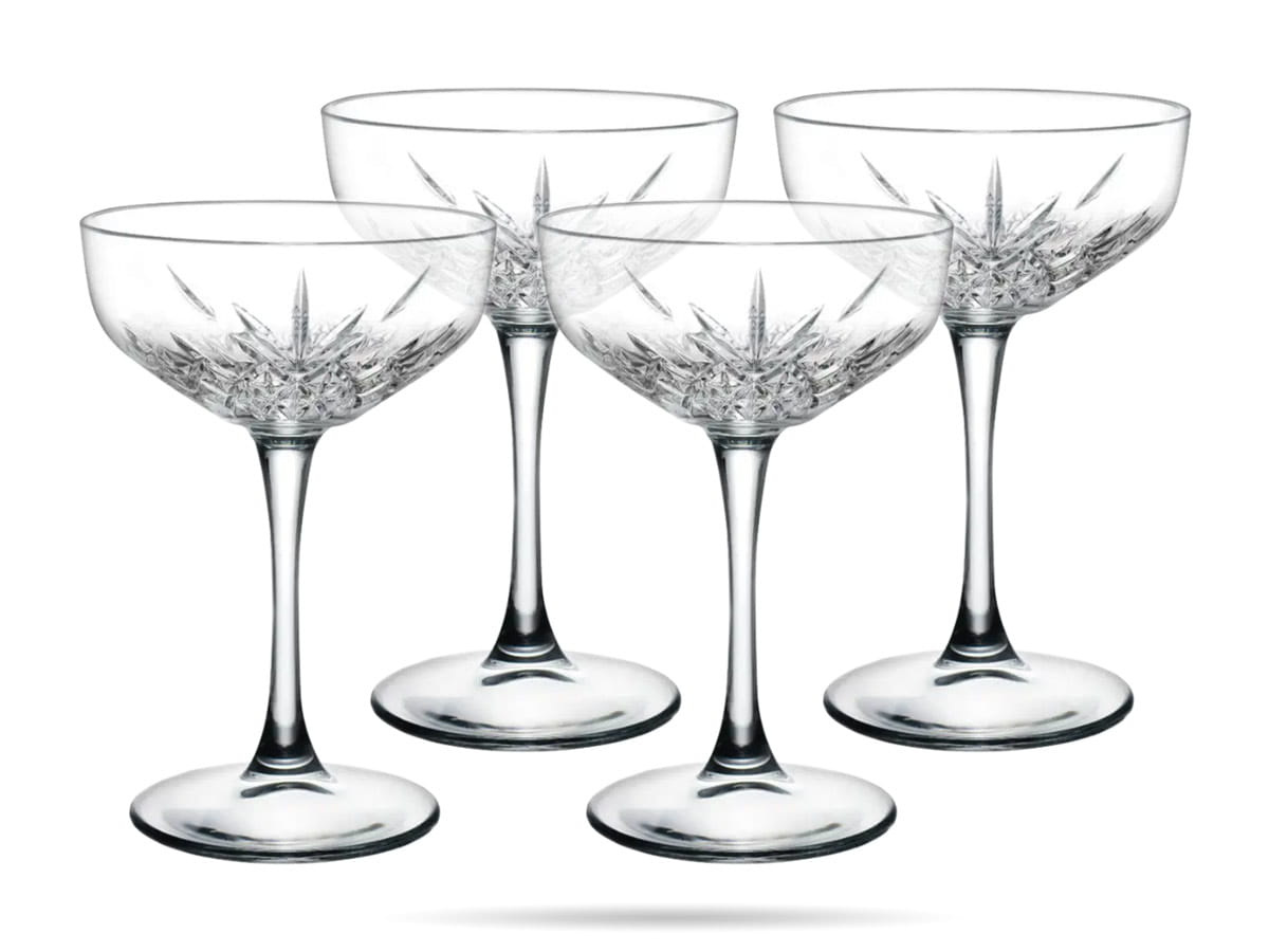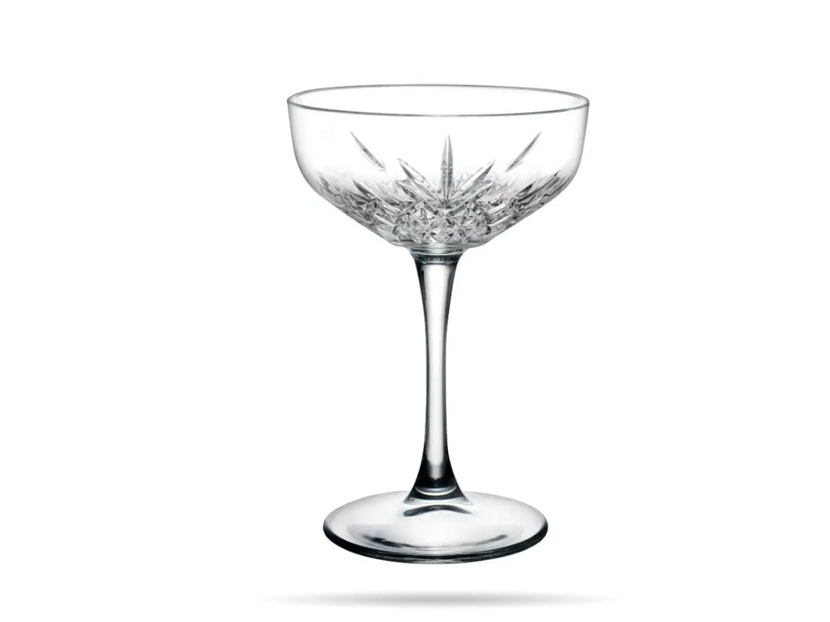 Kieliszki Timeless Pasabahce. Timeless to seria szkła zdobiona ciętym wzorem przypominającym kryształ. Kieliszki do szampana, koktajli, drinków. Pojemność 255 ml. Wysokość 15,8 cm. Średnica 11 cm. Można myć w zmywarce. Timeless sprawdzi się zarówno w gastronomii jak i w domowym użytku.