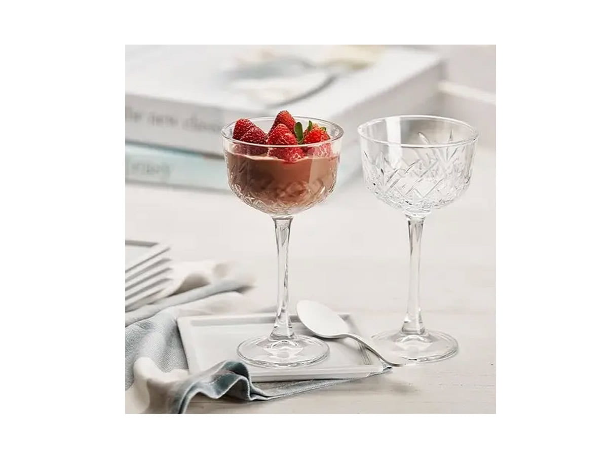 Kieliszki Timeless Pasabahce. Timeless to seria szkła zdobiona ciętym wzorem przypominającym kryształ. Smukłe kieliszki Nick & Nora sprawdzą się do serwowania różnego rodzaju trunków. Pojemność 160 ml. Wysokość 15,6 cm. Średnica 8,3 cm. Można myć w zmywarce. Timeless sprawdzi się zarówno w gastronomii jak i w domowym użytku.