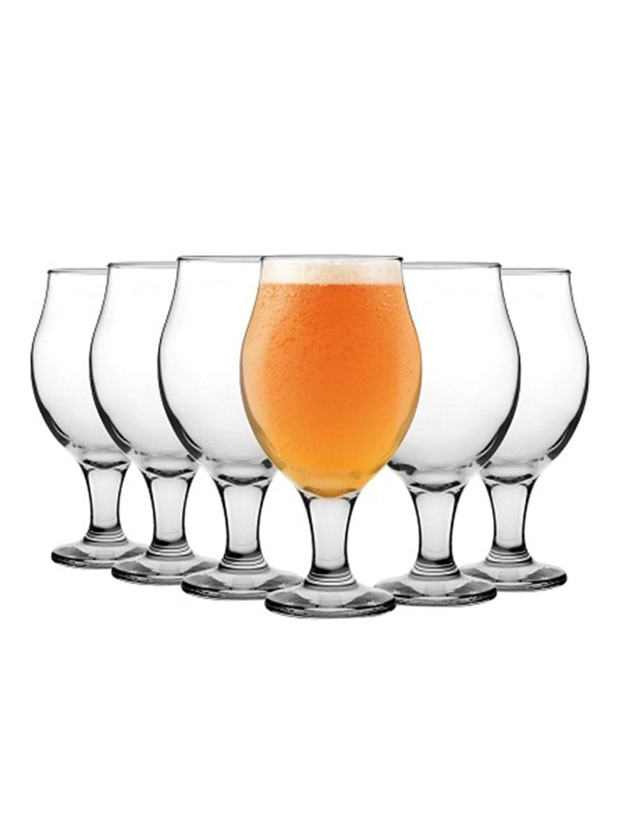 Zestaw kieliszków do piwa, soków, koktajli. Kieliszki z mocnego szkła w kształcie tulipana, osadzone na szerokiej stopie. Stabilne, wygodne kieliszki, które sprawdzą się zarówno w domu, jak i w pubie.