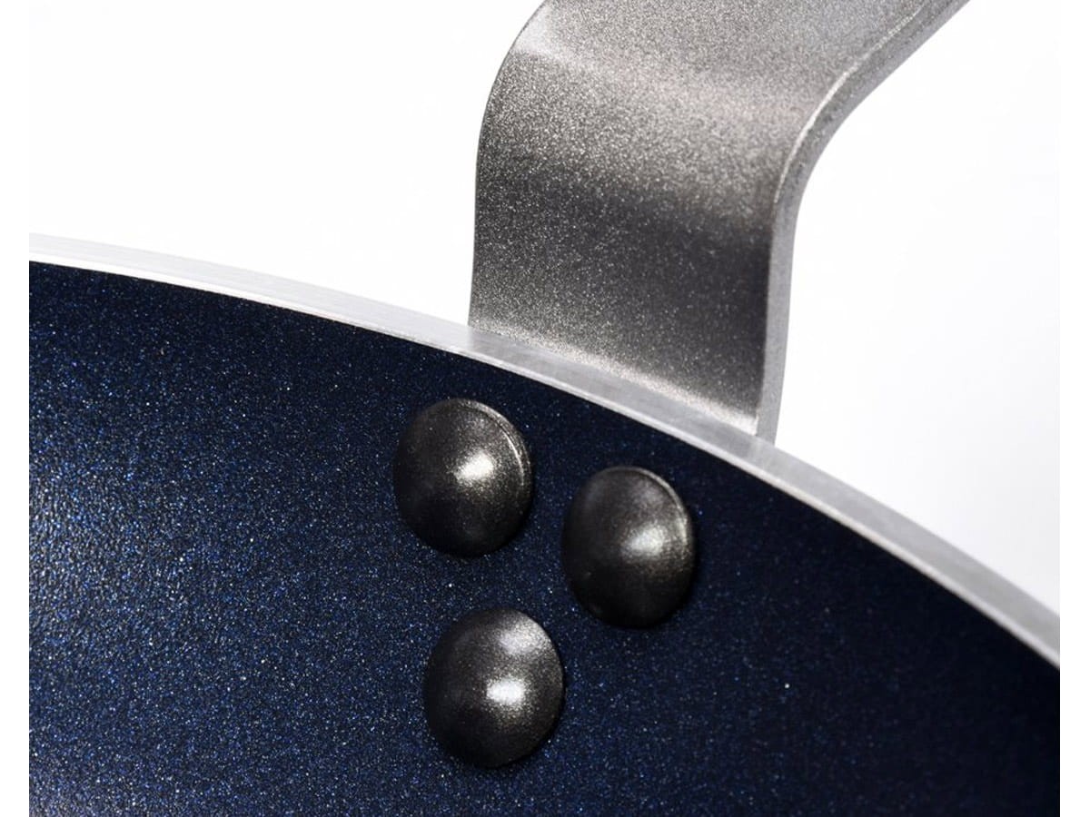 Rękojeść patelni wykonano ze stali epoksydowanej, połączonej z częścią roboczą za pomocą 3 nitów.