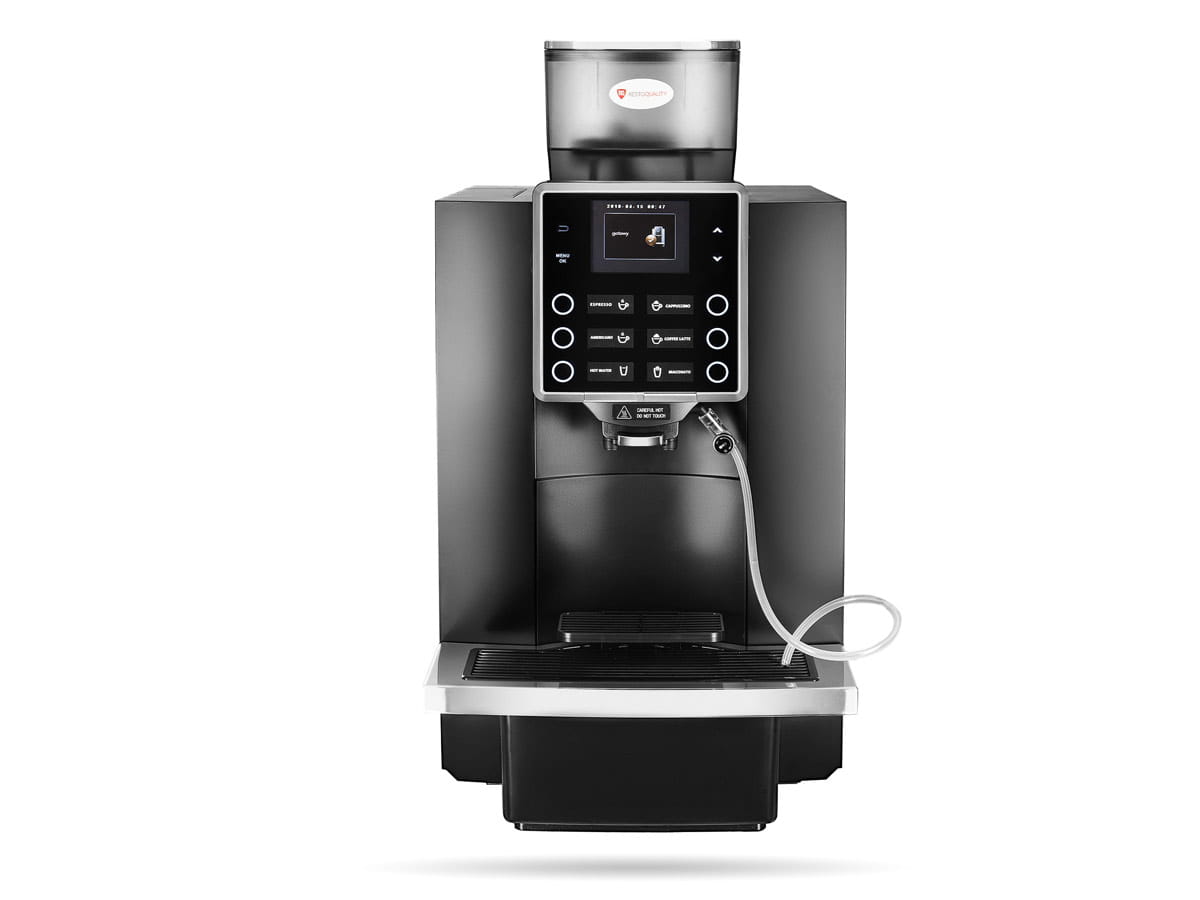 Ekspres do kawy Resto Quality. Automatyczny ekspres do kawy, wyposażony w dotykowy 7-calowy panel sterowania z wyborem 6 różnych napojów. Wydajność optymalna 80 filiżanek po 120 ml na dzień. Ekspres przeznaczony do małej i średniej gastronomii, biur, kawiarni, hoteli.