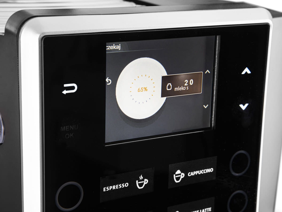 - możliwość zaprogramowania różnych napojów: espresso, americano, cappuccino, latte, latte macchiato, gorące mleko, gorące spienione mleko, gorąca woda, podwójne espresso, podwójne cappuccino, podwójne latte, podwójne latte macchiato, podwójne gorące mleko, podwójne gorące spienione mleko