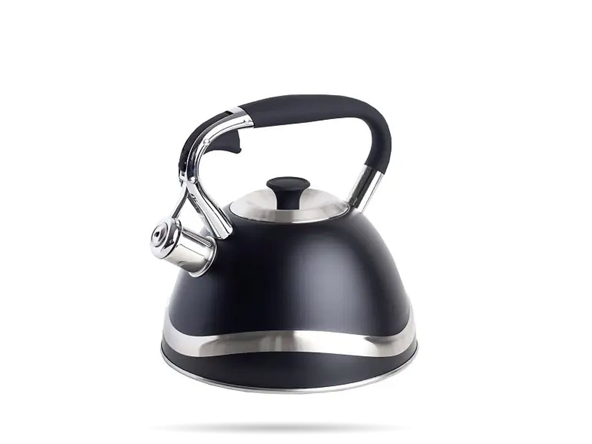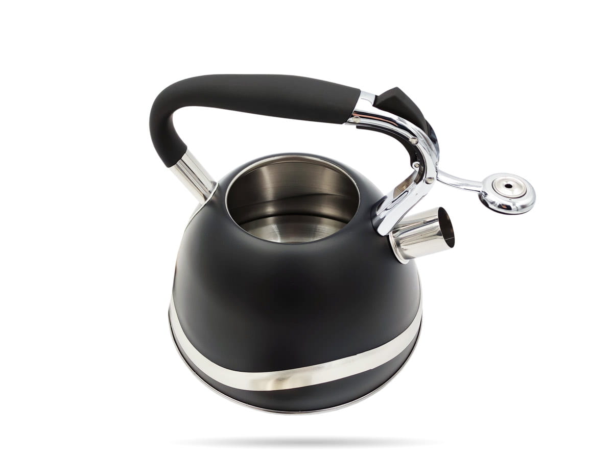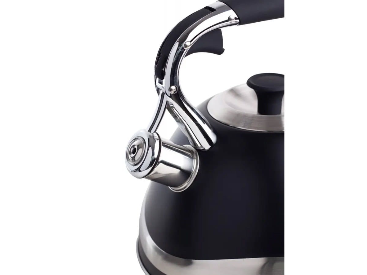 Czajnik wykonano z wysokiej jakości stali nierdzewnej i wykończono w eleganckim, matowym, czarnym kolorze. Jest poręczny i wygodny w użyciu. Posiada ergonomiczny uchwyt, który połączony jest z gwizdkiem, co chroni nas przed poparzeniem.