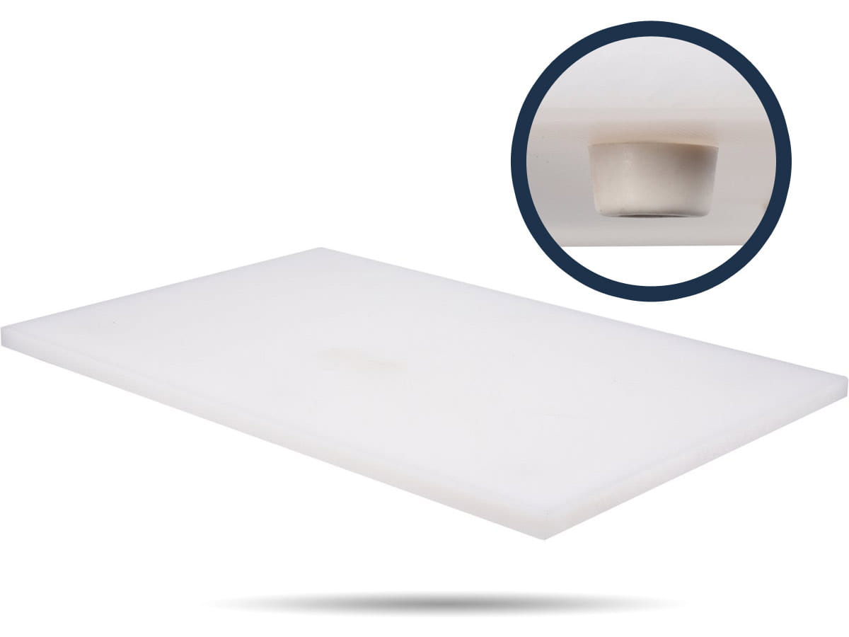 Uniwersalna deska do krojenia w kolorze białym przeznaczona do użytku w gastronomii. Wykonana jest z wysokiej jakości polietylenu, o grubości 20mm, gwarantującego dużą wytrzymałość i żywotność. Deska YATO posiada 6 gumowych nóżek antypoślizgowych, które zapobiegają ślizganiu się podczas pracy. Zaokrąglone krawędzie oraz staranne wykonanie zwiększają bezpieczeństwo podczas pracy.
