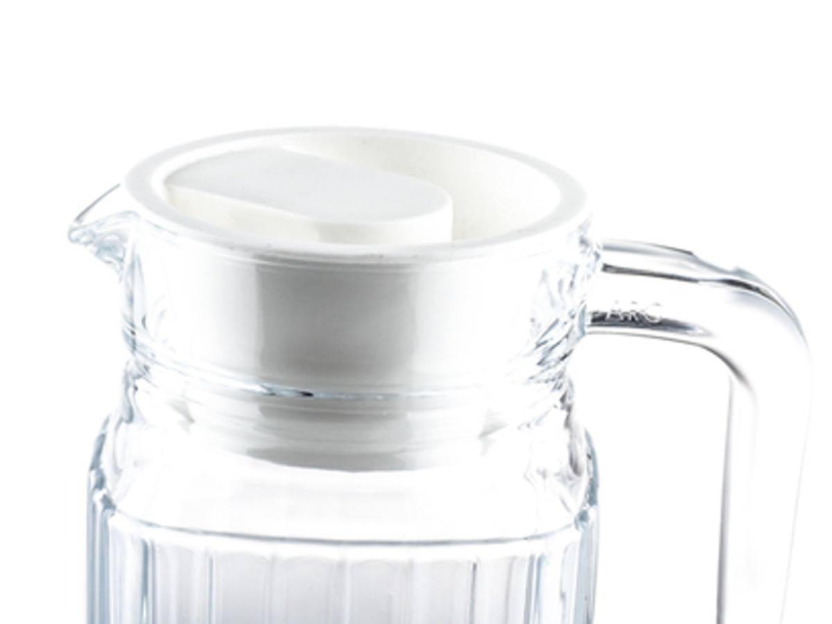 Dzbanek Quadro Luminarc. Świetnie sprawdzi się jako dzbanek do soków, herbaty, wody i innych napoi. Szklany dzbanek o kwadratowej podstawie z prążkowaną powierzchnią. Mocny i trwały, dzięki wykonaniu ze szkła hartowanego. Dzbanek z pokrywką, która zapobiega rozlaniu płynu. Wygodny w użyciu. Można przechowywać w lodówce.