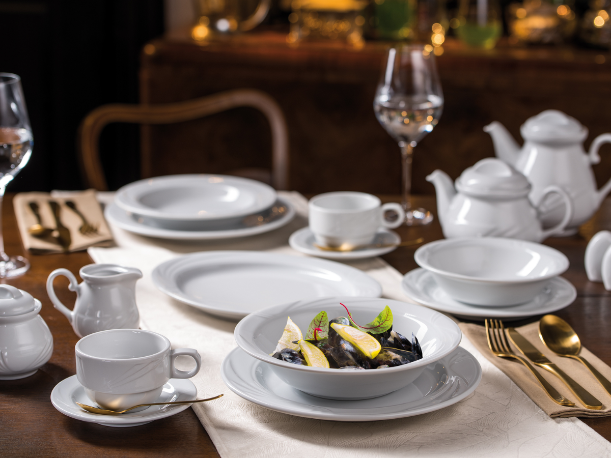 - Stylowy fason Arcadia z delikatnym tłoczeniem podkreśla elegancję nakrycia stołu