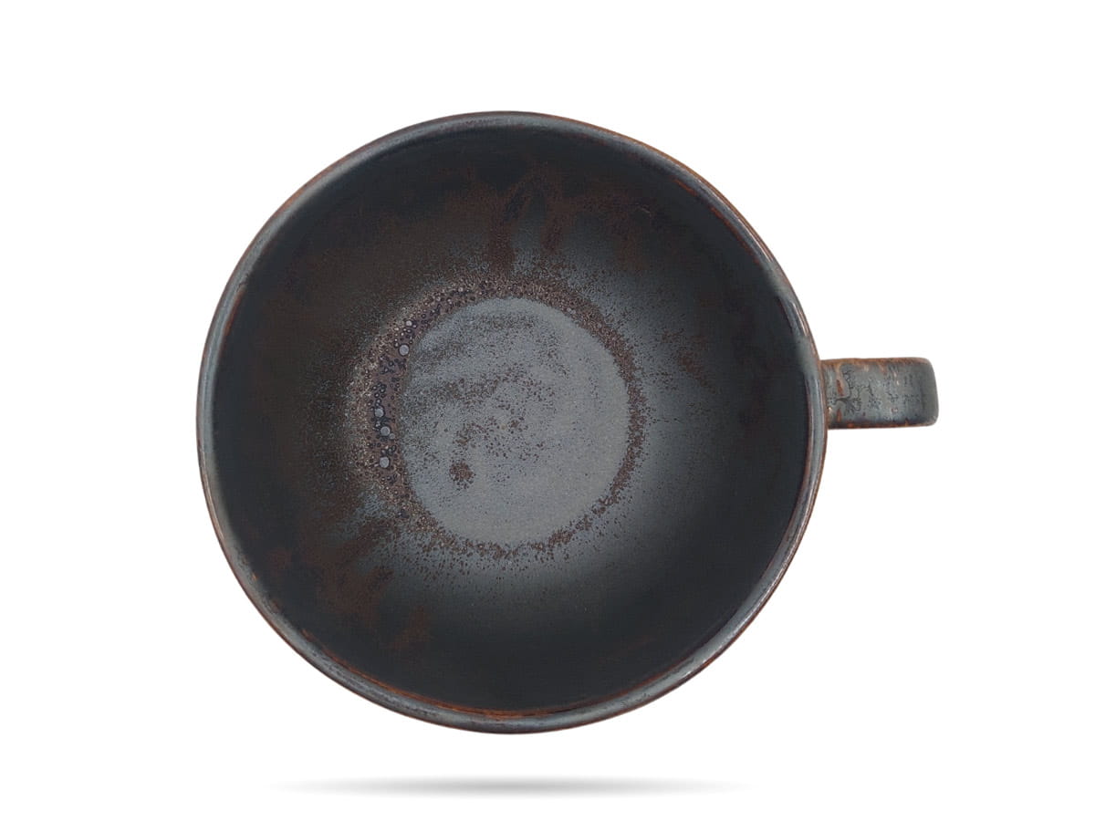 Filiżanka bez spodka Jumbo Hematyt Kera Ceramika. Filiżanka do cappuccino - szeroka i niska. Hematyt to seria oryginalnie zdobionych naczyń w surowej, brązowej barwie. Częściowo szkliwionej, częściowo matowej. Kera Ceramika to funkcjonalne i mocne naczynia, które przykuwają wzrok swoją nieoczywistą formą i barwą.