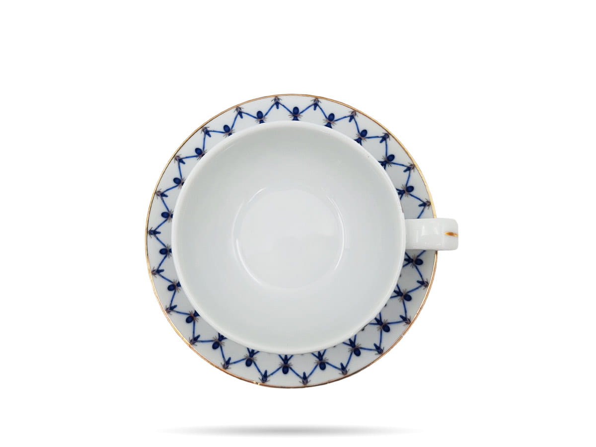 Seria Swietłana marki Bogucice to linia białej porcelany zdobionej granatowym, klasycznym wzorem. Motyw posiada też złote elementy, które delikatnie współgrają z całością.