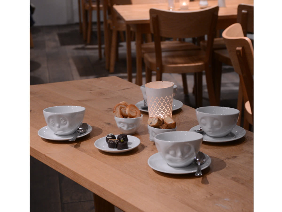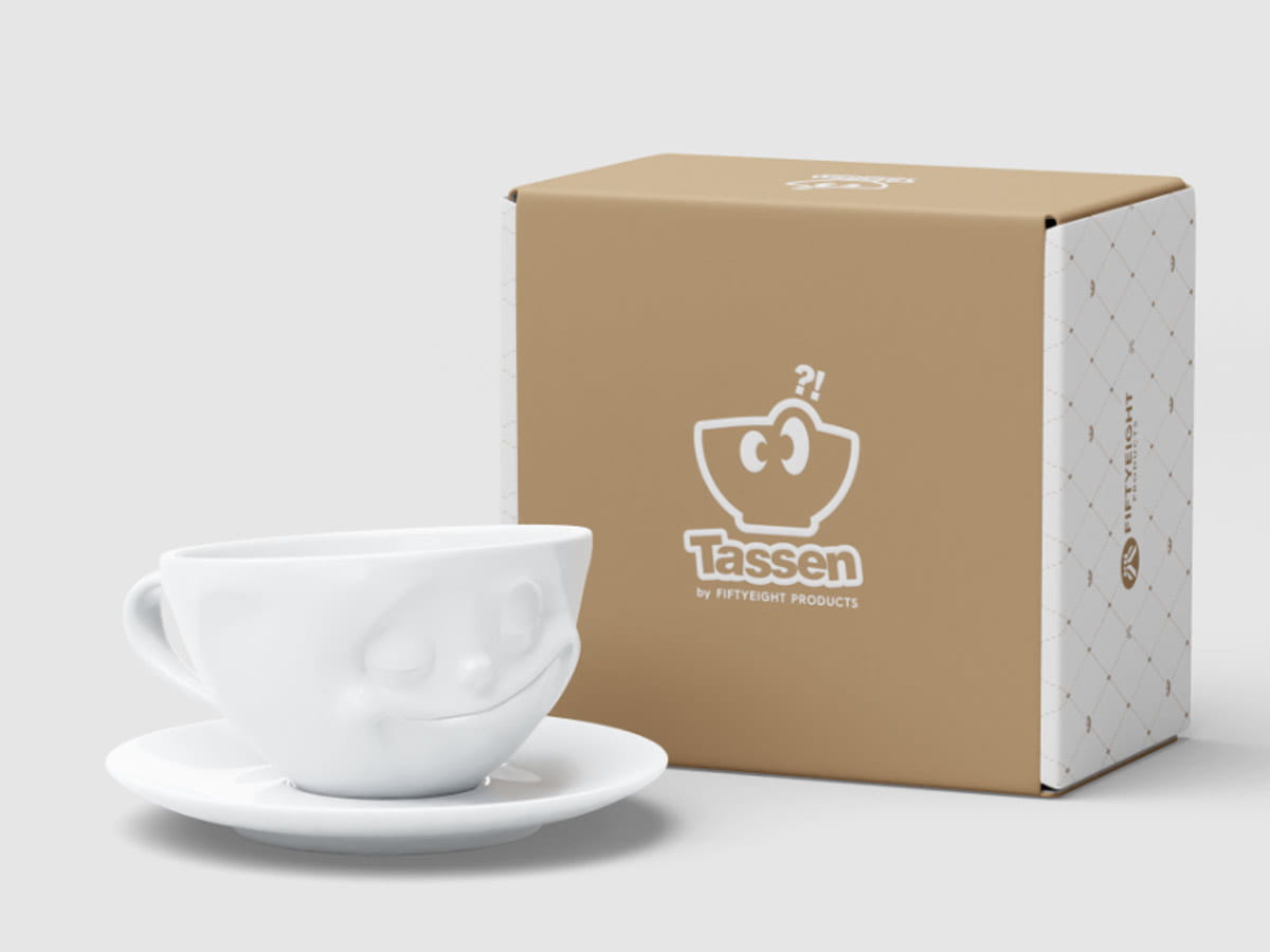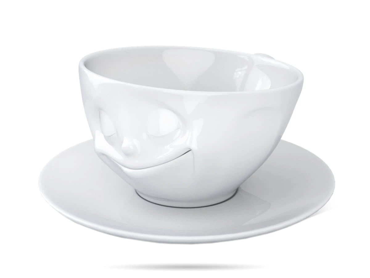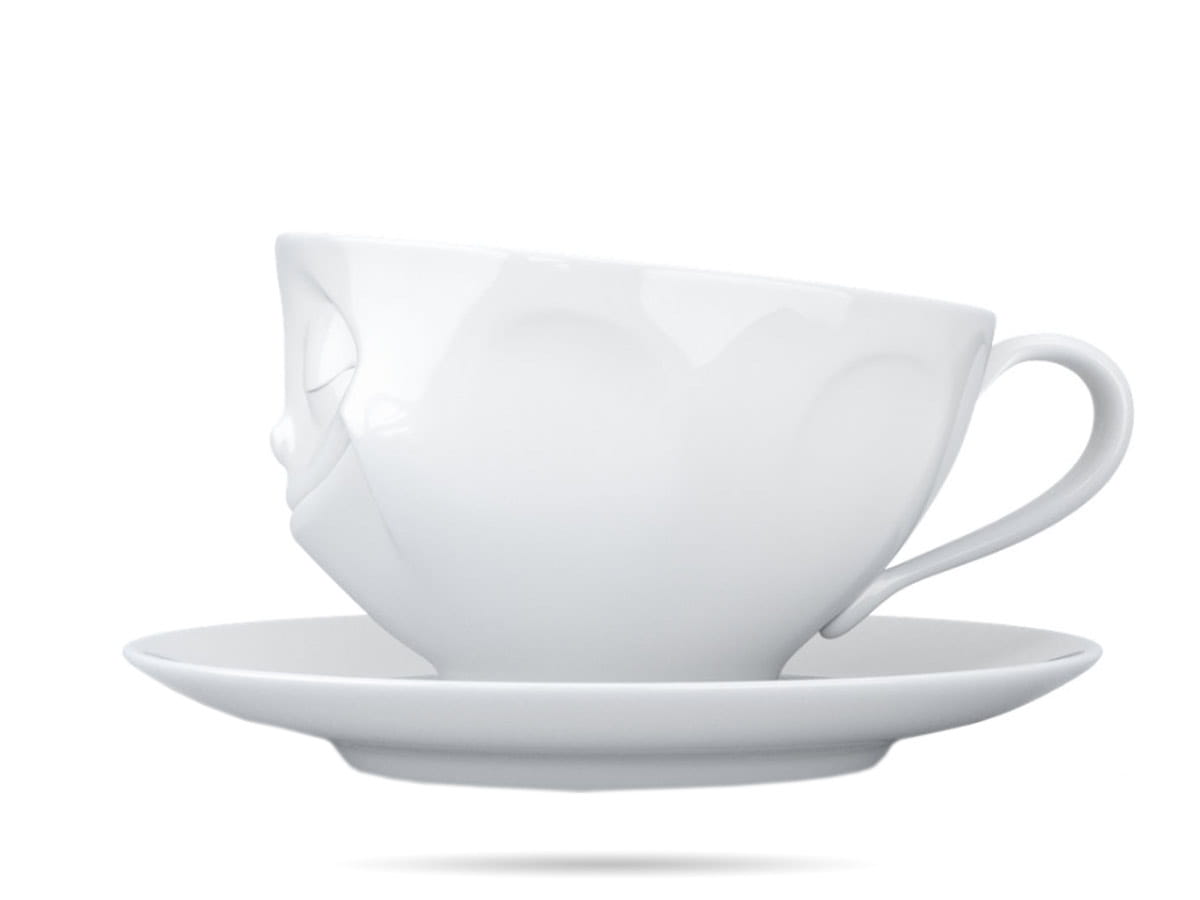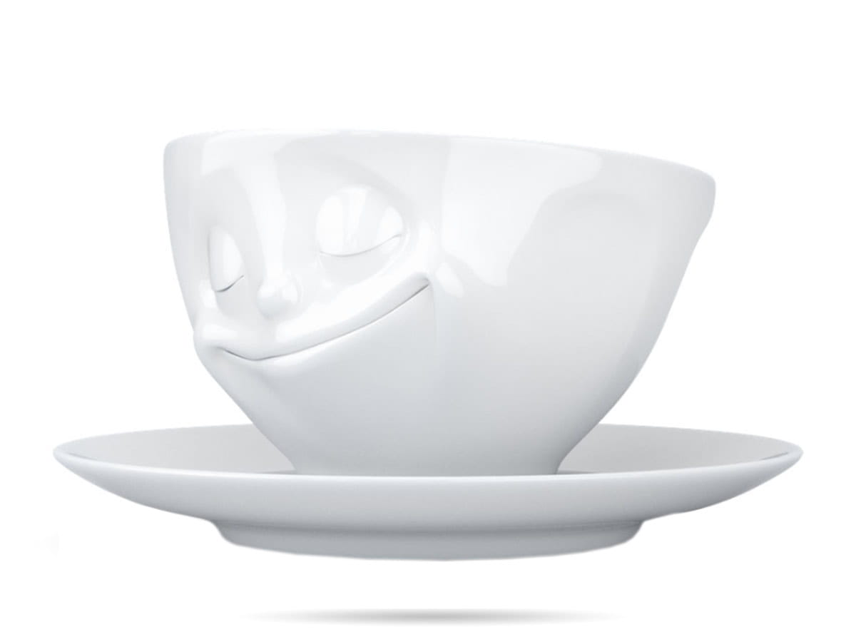 Filiżanka ze spodkiem 58Products. Tassen to linia wysokiej jakości porcelany z zabawnymi, wypukłymi buźkami. Ciekawa filiżanka do kawy, herbaty to doskonały pomysł na prezent.