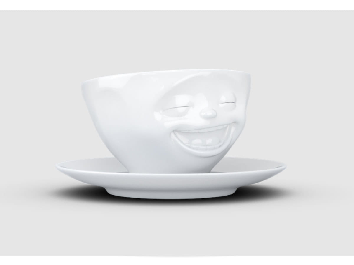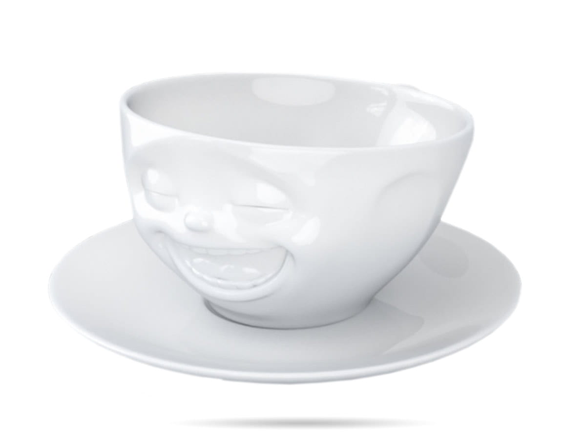 Filiżanka ze spodkiem LAUGHING porcelana na prezent Tassen 58PRODUCTS