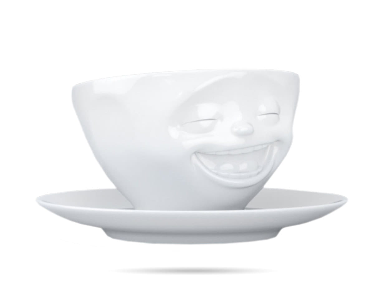 Uśmiechnięta filiżanka ze spodkiem LAUGHING prezent Tassen 58PRODUCTS
