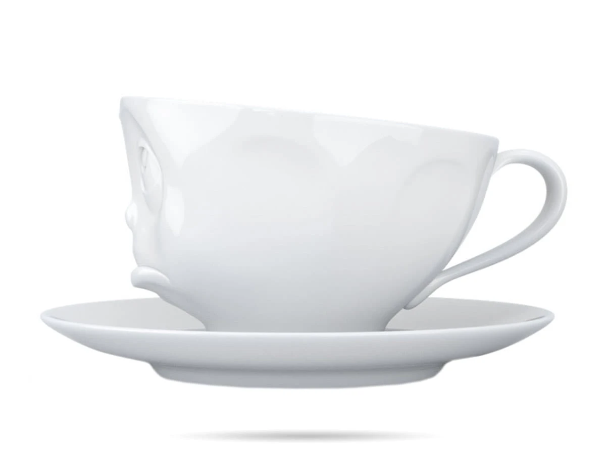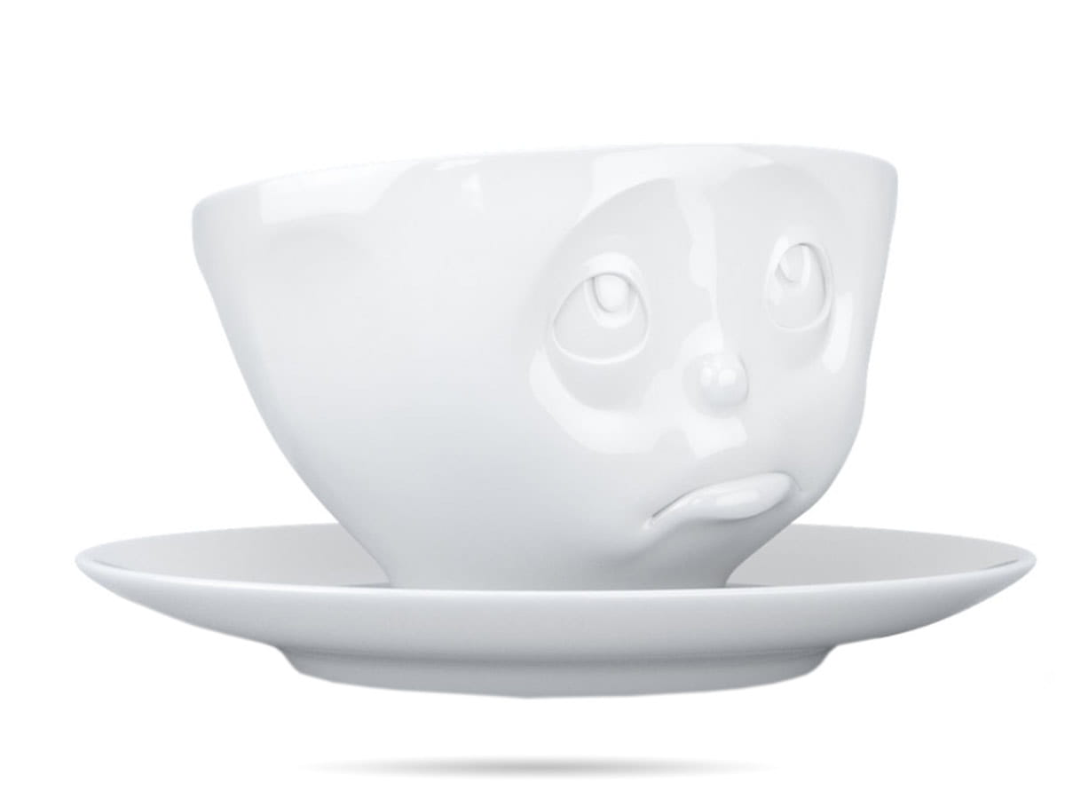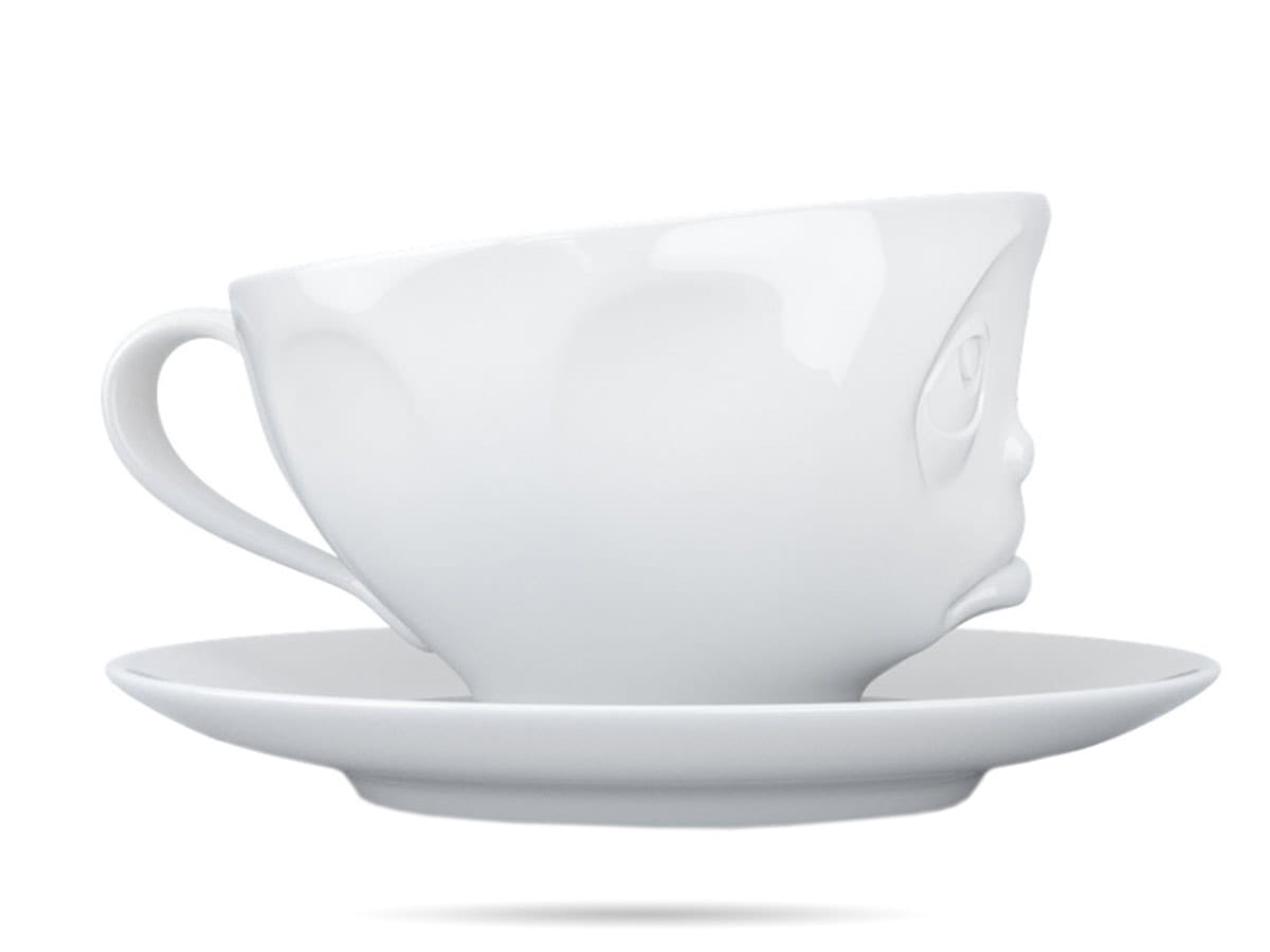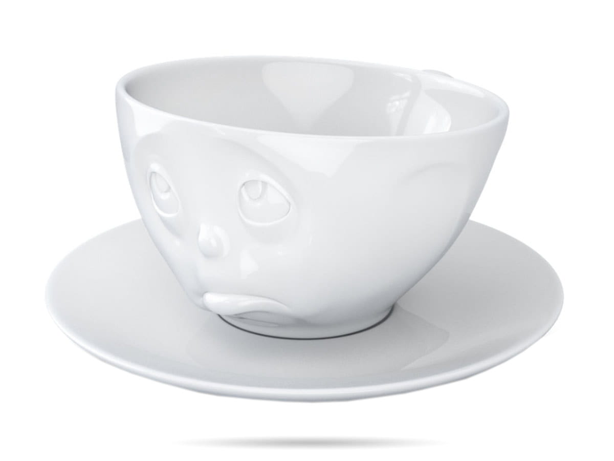 Filiżanka ze spodkiem 58Products. Tassen to linia wysokiej jakości porcelany z zabawnymi, wypukłymi buźkami. Ciekawa filiżanka do kawy, herbaty to świetny pomysł na prezent.