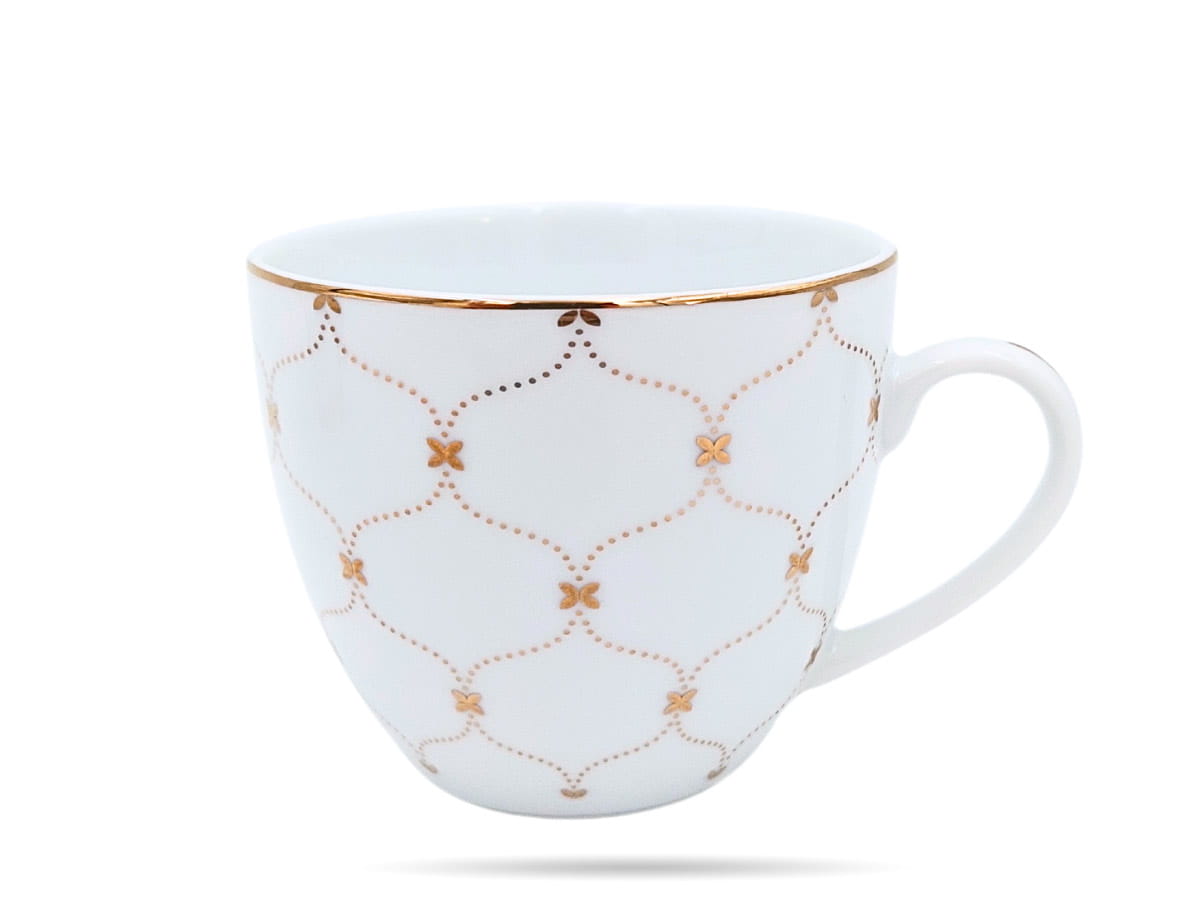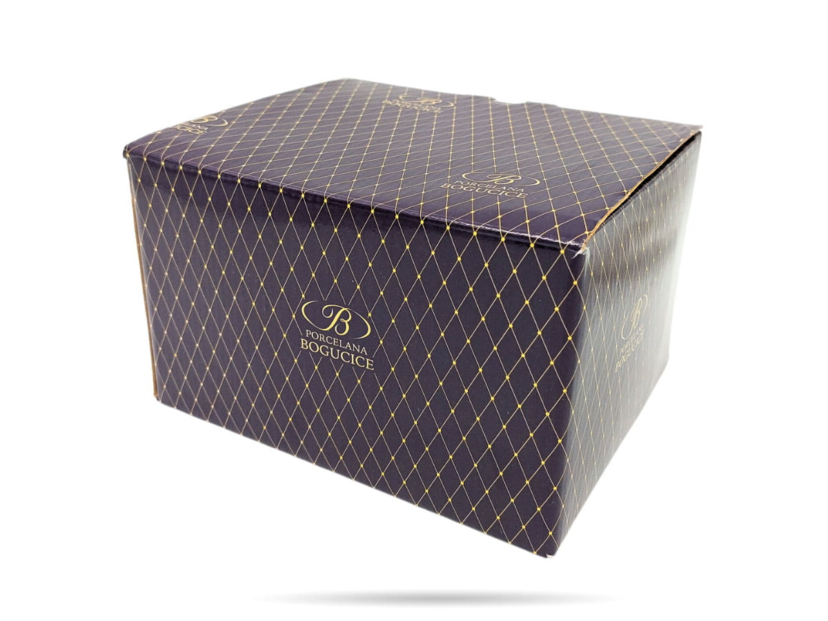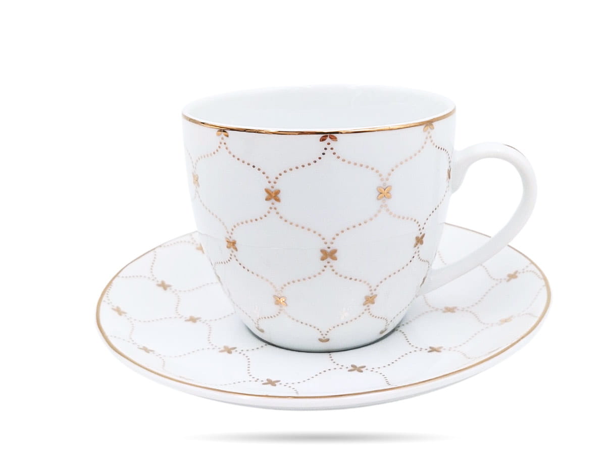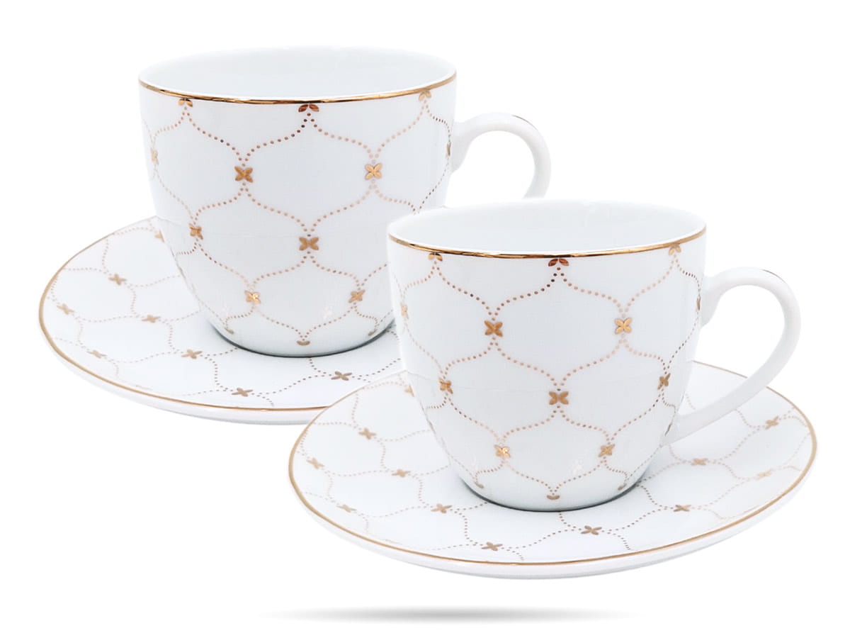 Filiżanki do kawy herbaty, wykonani z wysokiej jakości porcelany. Filiżanki ze spodkami, zdobione złotym wzorem, zapakowane w ozdobne pudełko - to gotowy pomysł na prezent.