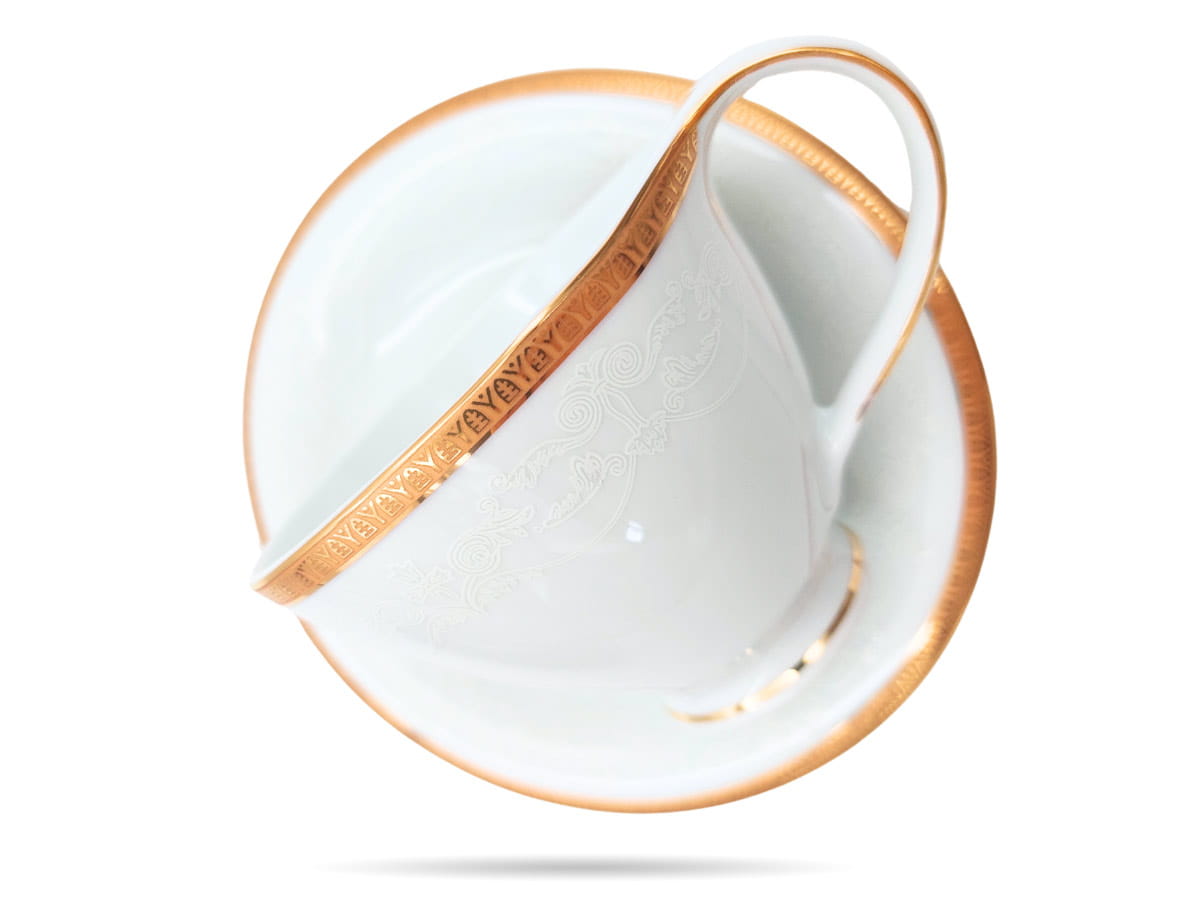 Filiżanki ze spodkiem 200 ml Antonio Gold Plus prezent PORCELANA BOGUCICE