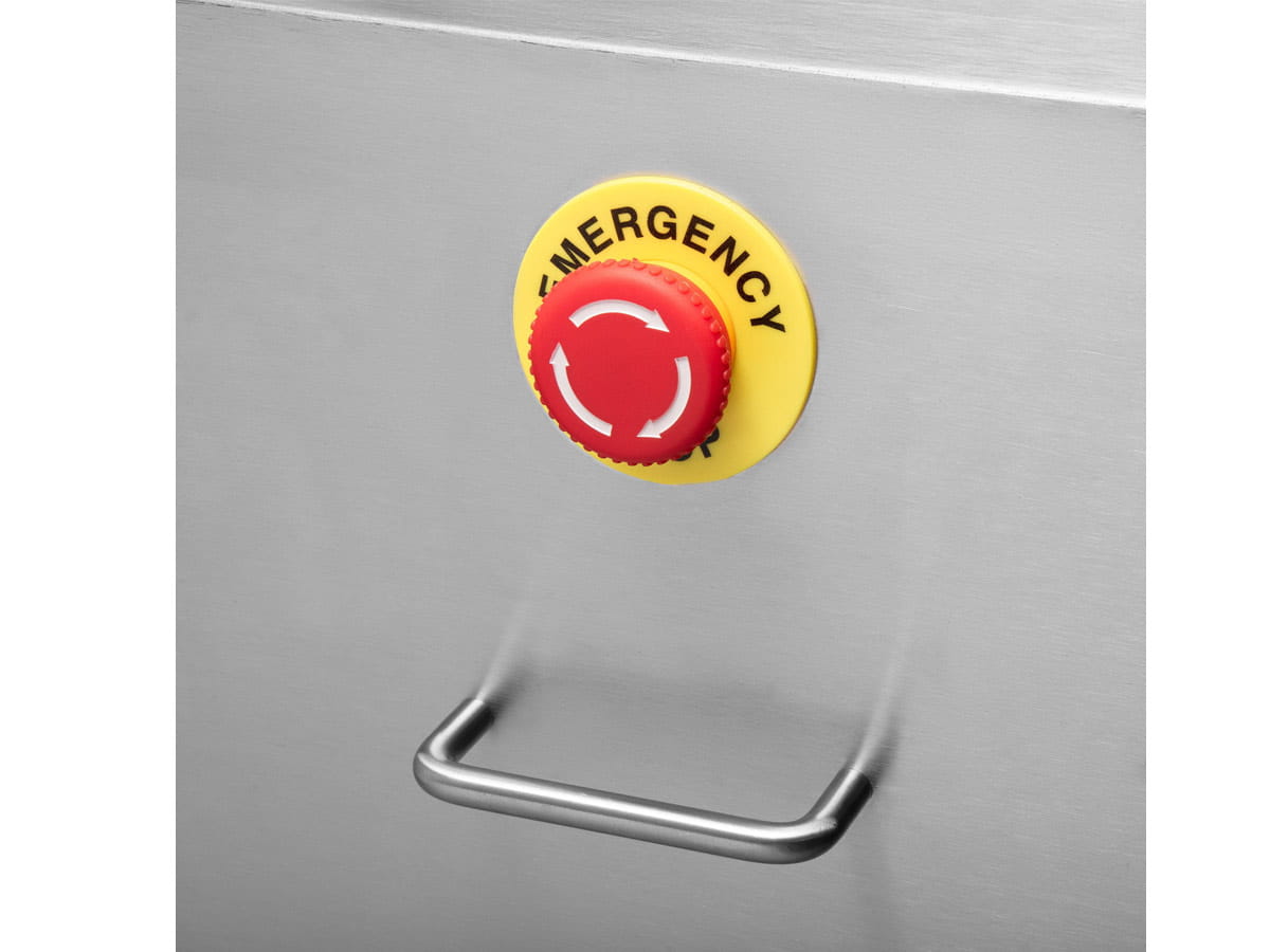 - posiada przycisk zatrzymujący pracę maszyny oraz osłonę górną i przednią, co gwarantują bezpieczną pracę osobie obsługującej maszynę