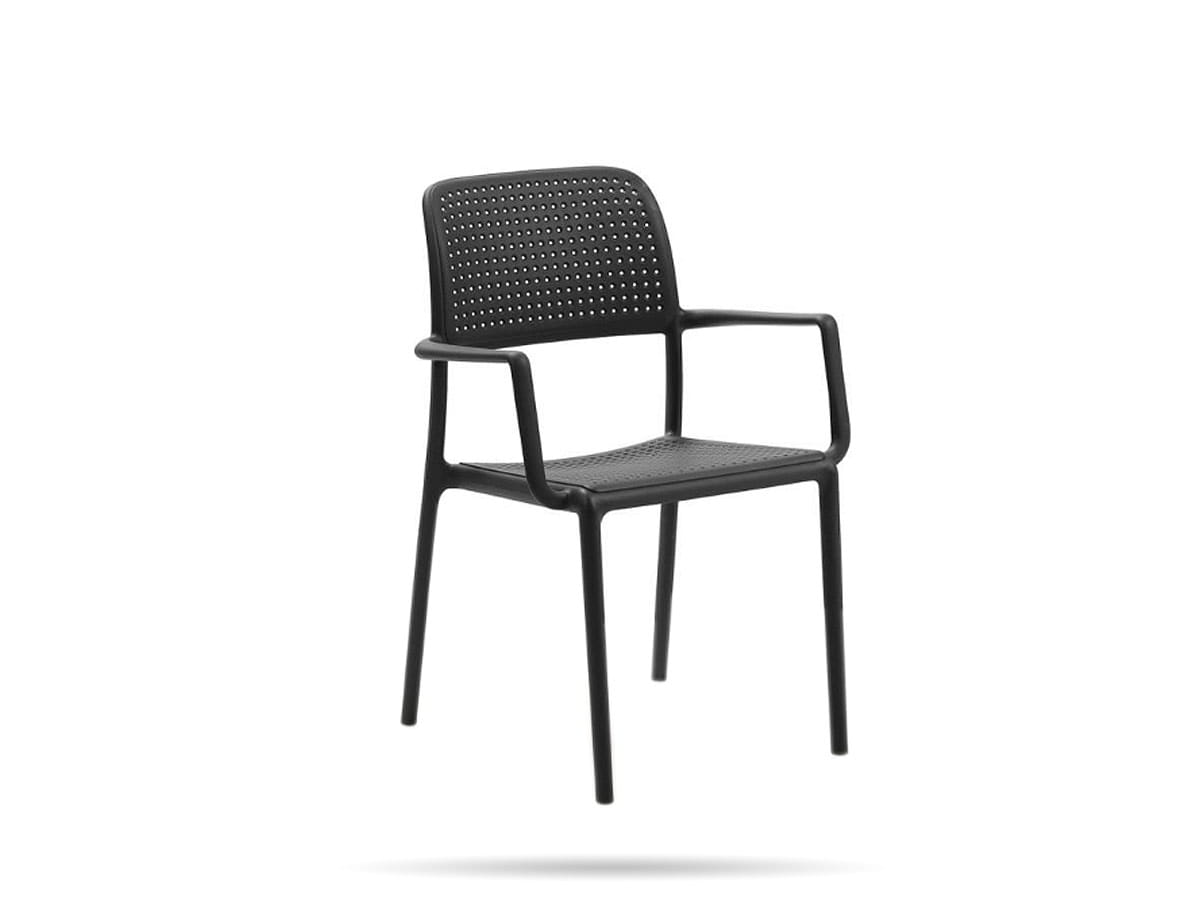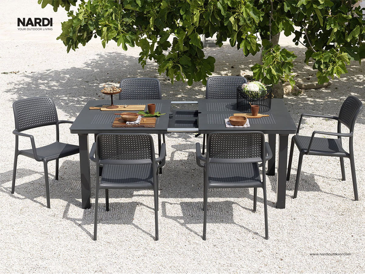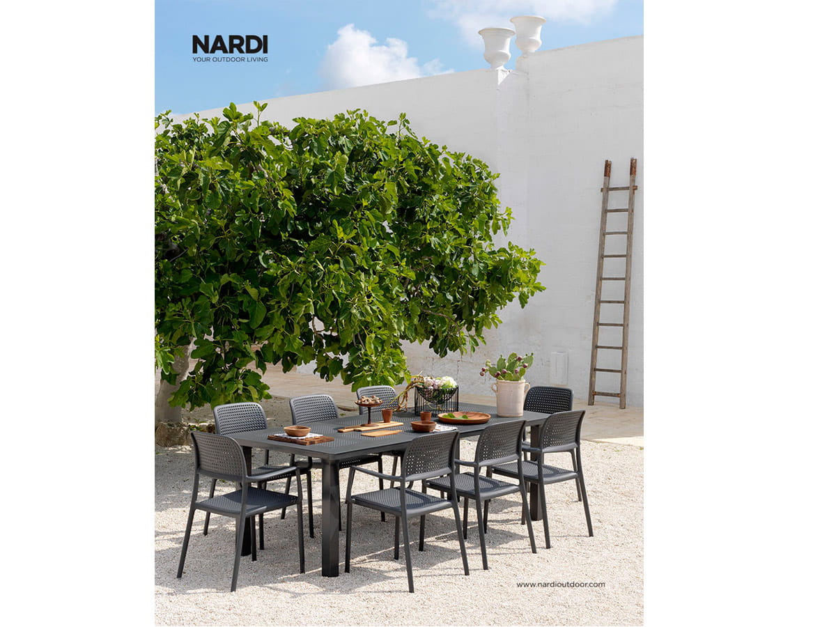 Krzesło Bora, jak wszystkie meble włoskiej firmy NARDI, jest zrobiony z wysokiej jakości żywicy polipropylenowej wzmocnionej włóknem szklanym. Dzięki temu jest bardzo wytrzymały i nie pęka. Dodatki UV, matowe wykończenie i barwienie całej masy na etapie produkcji to gwarancja, że mebel jest odporny na warunki atmosferyczne i zachowa głęboki kolor na lata. Dodatkowo meble NARDI są bezpieczne dla środowiska i w pełni nadają się do recyklingu.