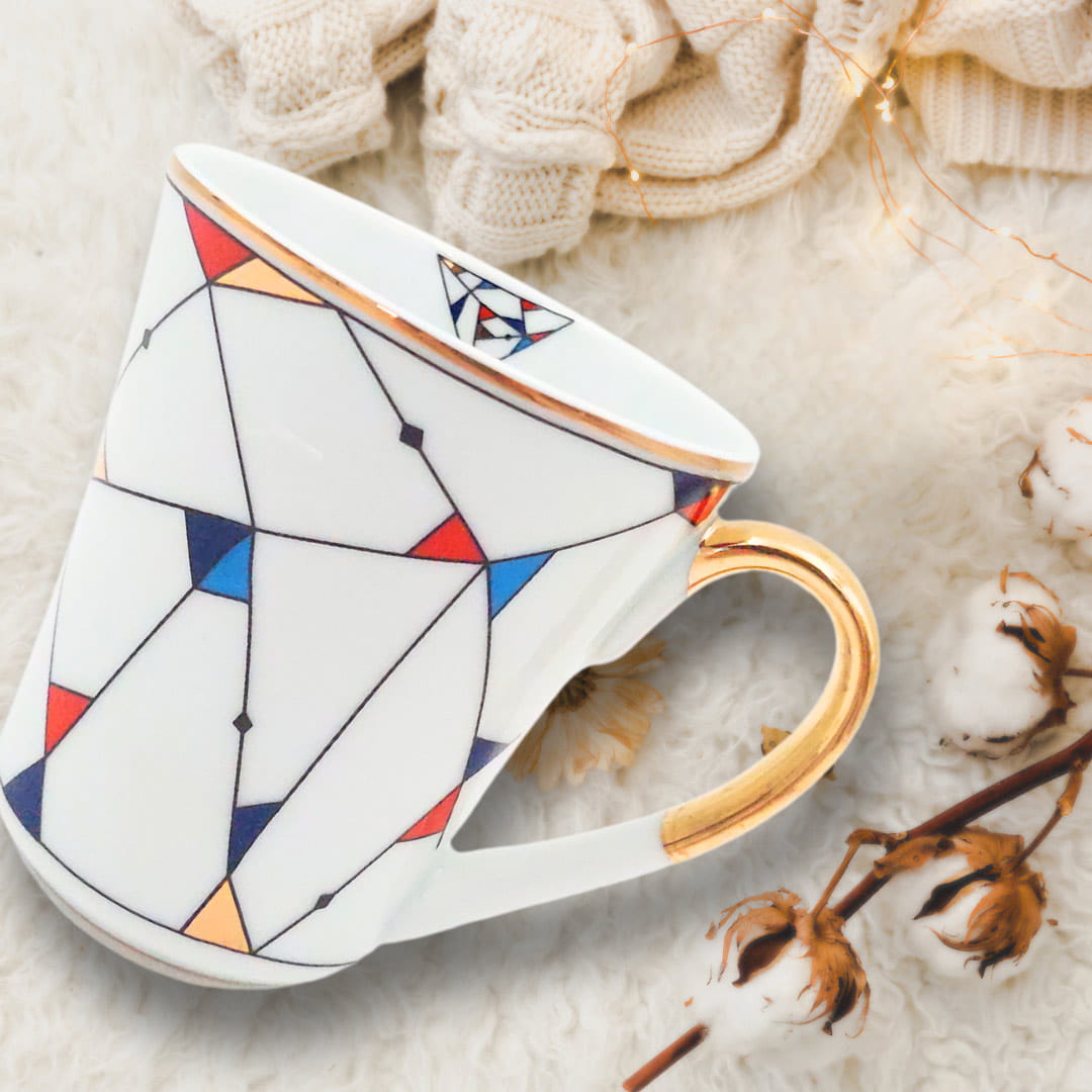Arlekin Porcelana Bogucice to stylowe połączenie geometrycznego wzoru ze złotą ramką i uchwytem. Wysoka jakość, elegancki design i ozdobne opakowanie sprawiają, że to doskonały pomysł na prezent dla kogoś wyjątkowego.