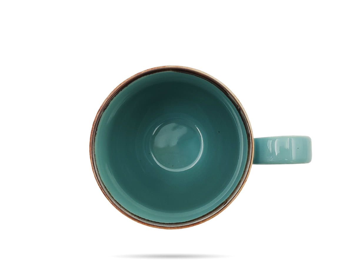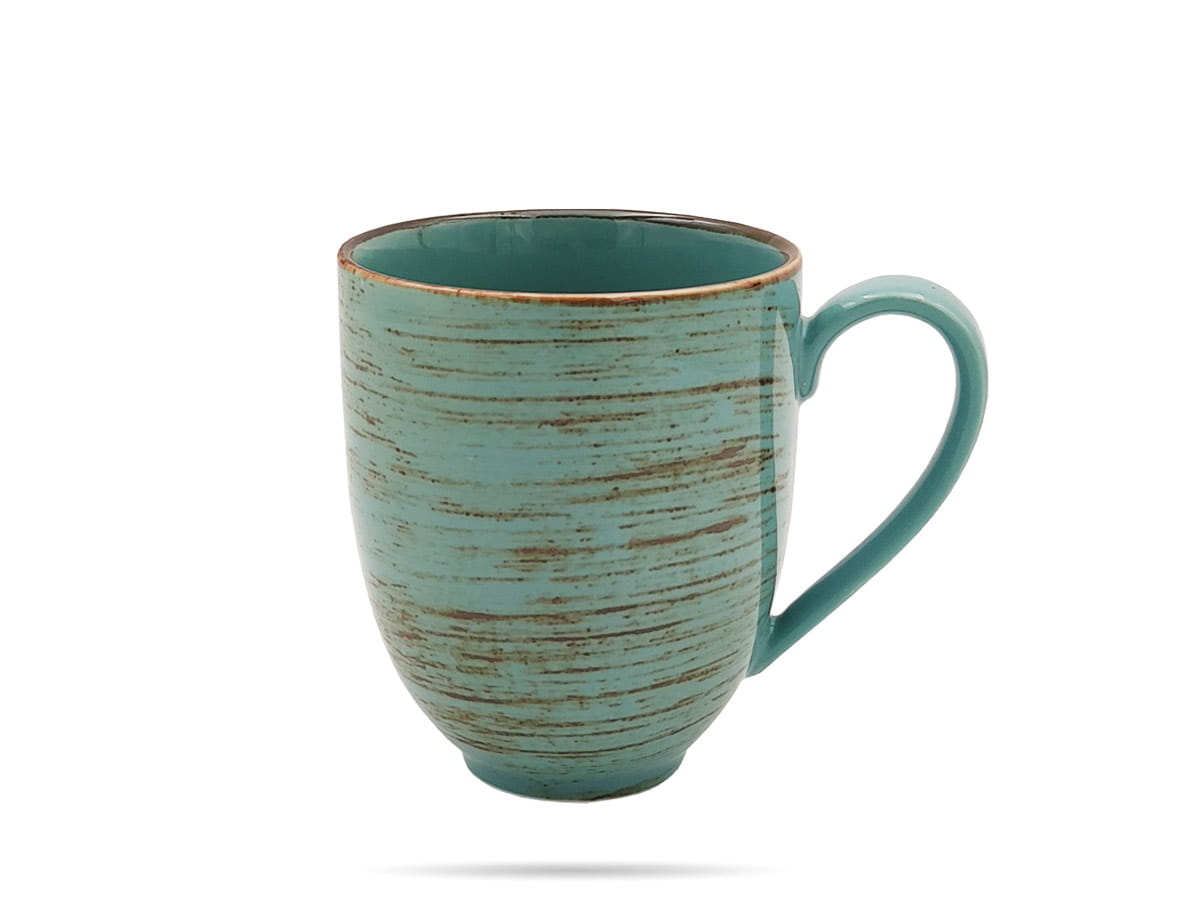 Poręczny kubek o pojemności 400 ml z serii Nostalgia Opal firmy Porcelana Bogucice. Seria Nostalgia w kolorze Opal to linia porcelany w miętowym odcieniu zieleni, z nieregularnymi przetarciami w różnych odcieniach brązu. Takie wzornictwo dodaje charakteru i niepowtarzalnego wyglądu. Jakość porcelany pozwala na bezpieczne mycie jej w zmywarkach, a także na stosowanie jej w kuchenkach mikrofalowych.