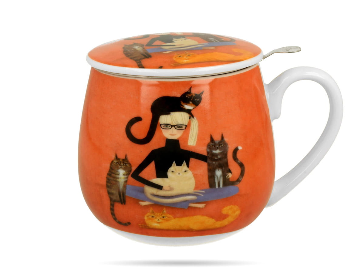 Kubek baryłka z zaparzaczem Koci świat Cindy i koty 430 ml porcelana DUO