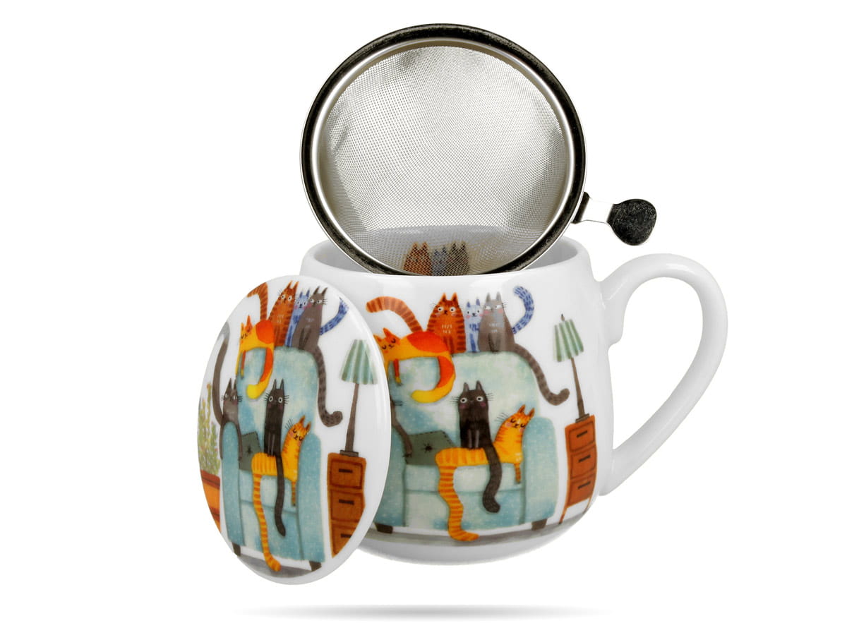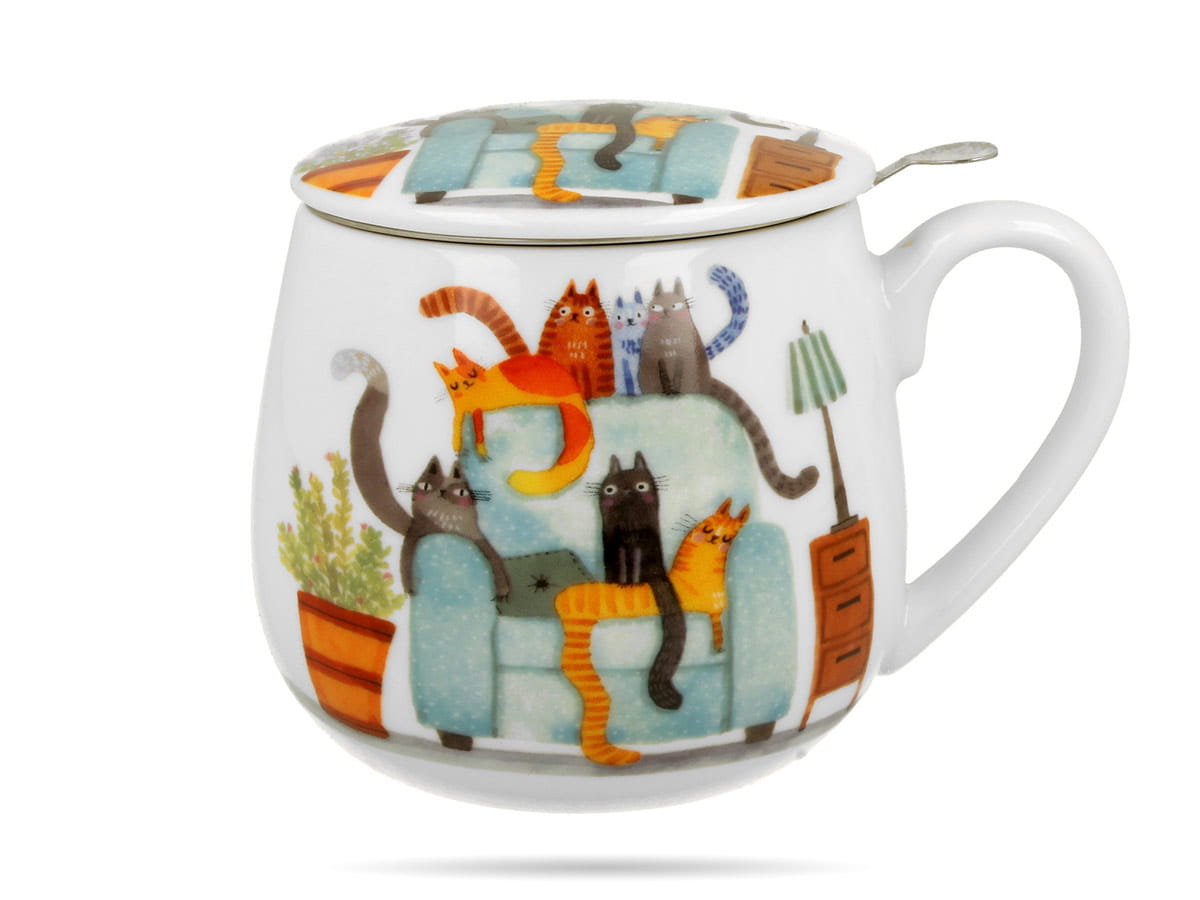 Kubek baryłka z zaparzaczem Koci świat koty w fotelu 430 ml DUO