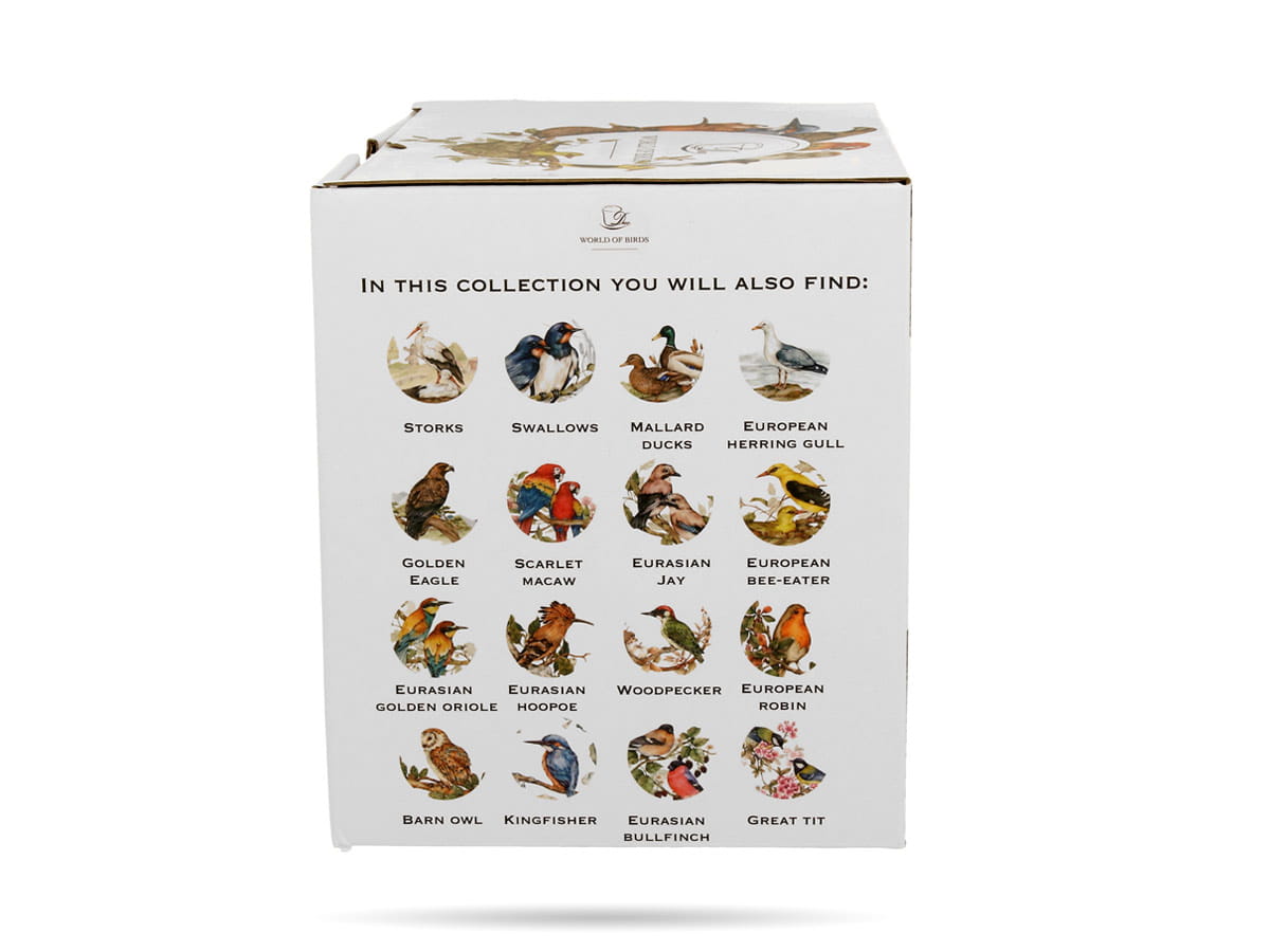Kolorowy kubek do kawy, herbaty z serii Ptasi świat Duo - kolekcjonerska linia kubków ozdobionych naturalną grafiką różnych ptaków. W serii znajdziecie m.in. papugi, sowy, rudziki, sikorki i pawie.