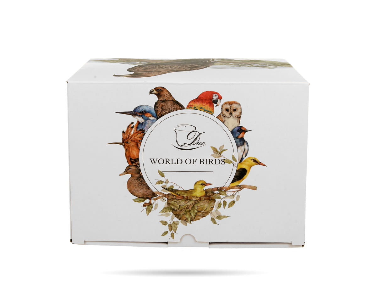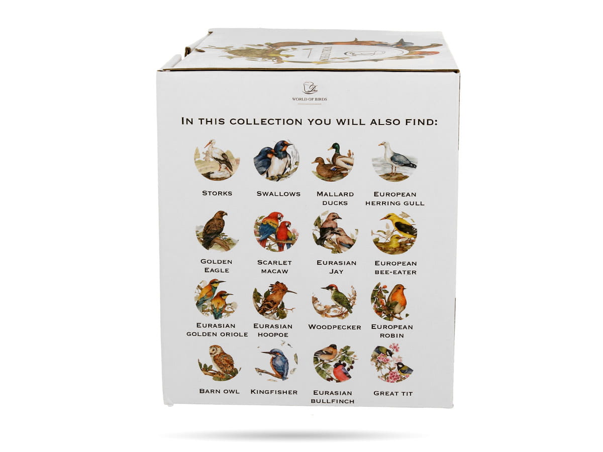 Kolorowy kubek do kawy, herbaty z serii Ptasi świat Duo - kolekcjonerska linia kubków ozdobionych naturalną grafiką różnych ptaków. W serii znajdziecie m.in. papugi, sowy, rudziki, sikorki i pawie.