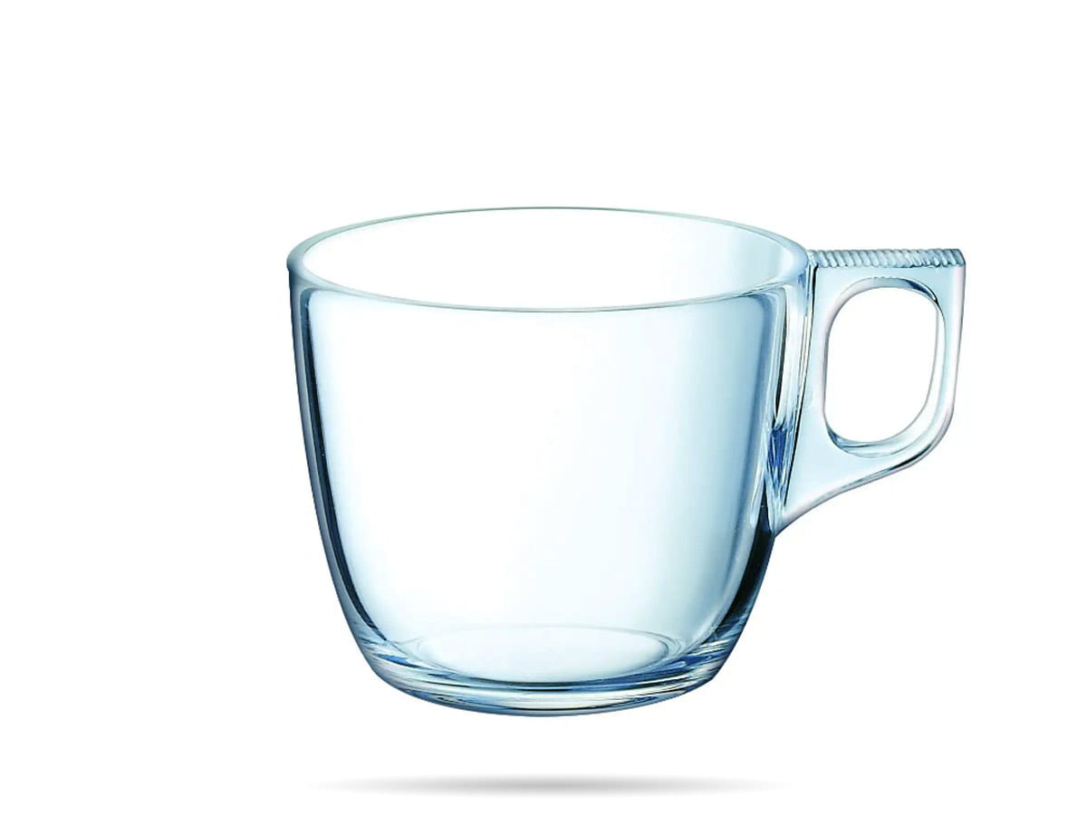 Kubek szklanka do herbaty Voluto Arcoroc. Pojemność 220 ml, wysokość 7 cm, średnica 8 cm. Wykonana ze szkła hartowanego. Można myć w zmywarce i stosować w mikrofali.