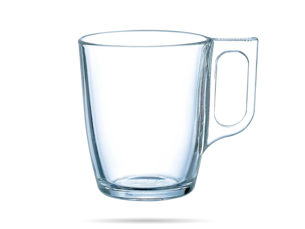 Kubek szklanka do herbaty Voluto Arcoroc. Pojemność 250 ml, wysokość 9 cm, średnica 7,5 cm. Wykonana ze szkła hartowanego. Można myć w zmywarce i stosować w mikrofali.