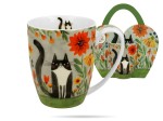 Kubek w koszyczku 360 ml Koci świat łąka porcelana na prezent DUO