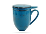 Kubek Cottage Laguna Alumina Porcelana Bogucice. Kubek z pokrywką i zaparzaczem - idealny kubek do parzenia herbaty lub ulubionych ziół. Wykonany z wysokiej jakości porcelany w głębokim, turkusowym kolorze, ręcznie zdobiony, solidnie pokryty szkliwem.