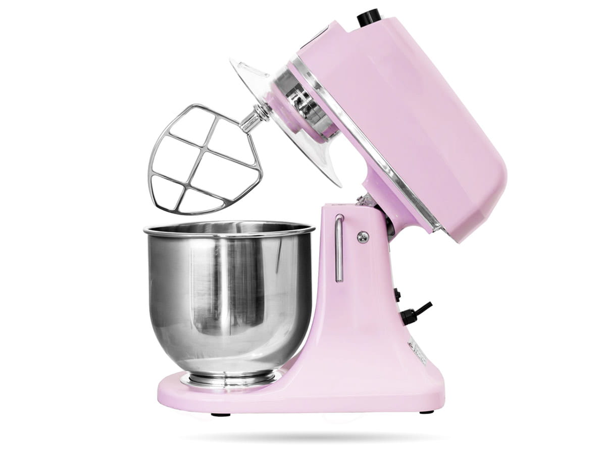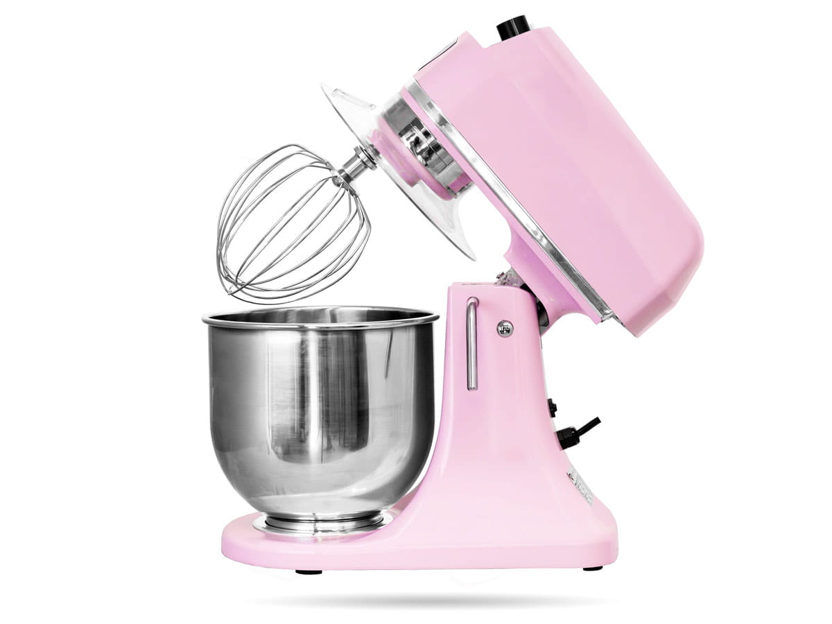 - w zestawie dzieża z wygodnym uchwytem, hak, mieszadło płaskie i rózga ze stali nierdzewnej, dzięki którym przygotujesz różnego rodzaju ciasta, kremy i inne wypieki