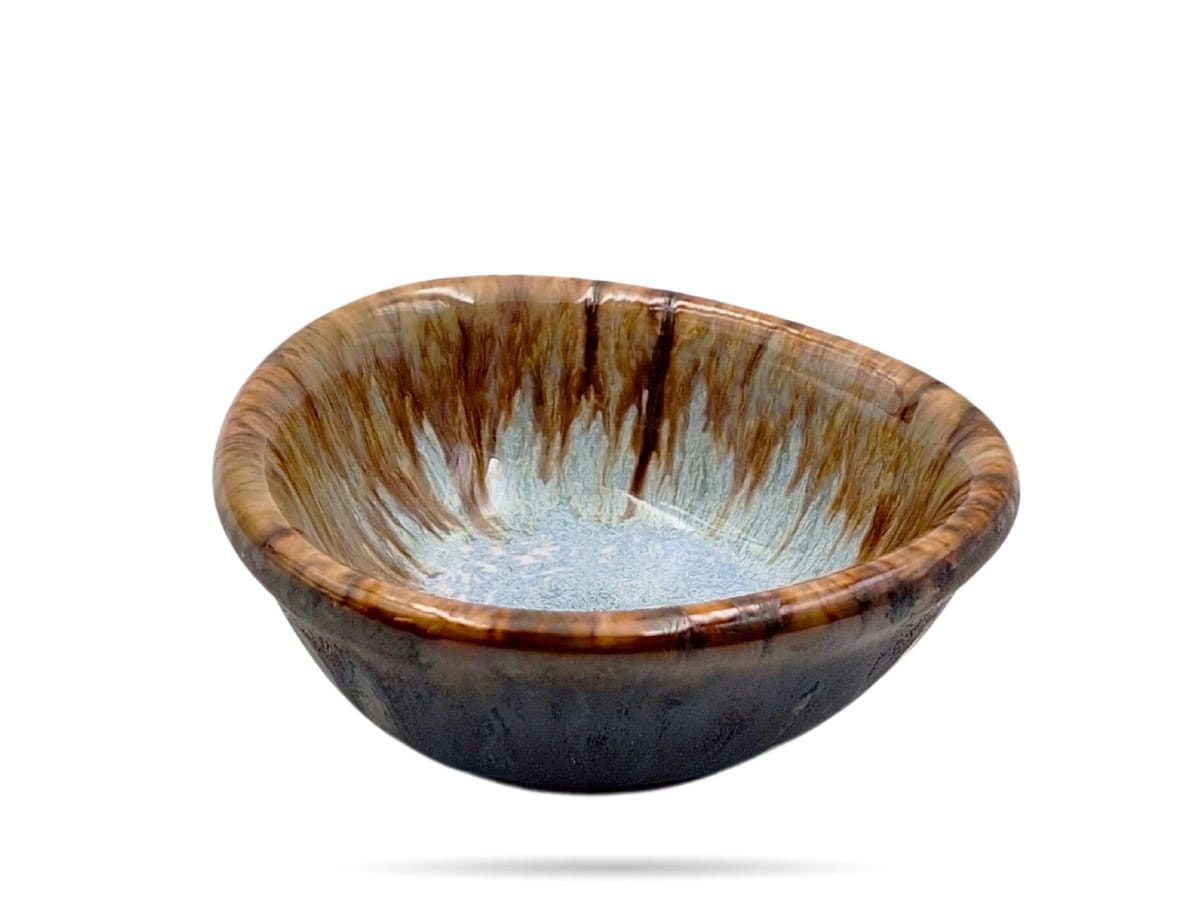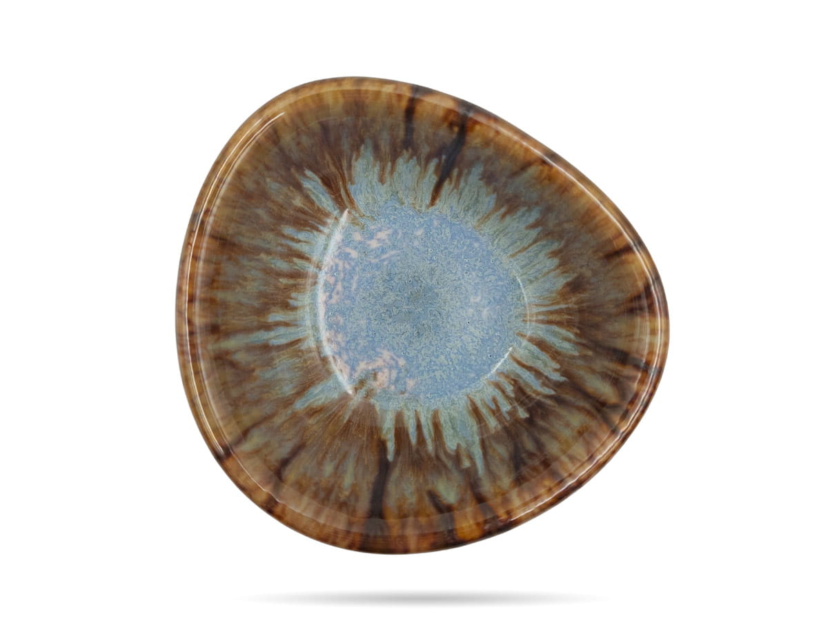 Trójkątna miseczka z serii Kerative Kera Ceramika - połączenie tradycji i nowoczesnego designu. Naturalna, błękitna barwa, szkliwione spękana na wierzchniej części, mat na spodzie i bokach, tworzą niebanalną kompozycję. Doskonale sprawdzi się w gastronomii: do restauracji, hoteli, karczm lub pizzerii.