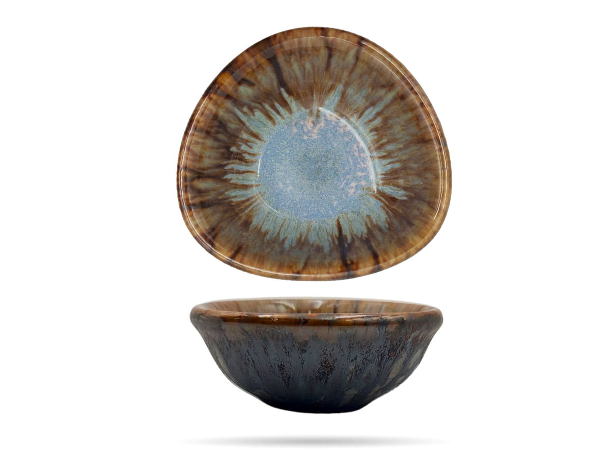 Miseczka Topaz Kera Ceramika. Trójkątne naczynie na dipy, sosy, dodatki. Niebanalna forma, naturalne zdobienie i wyjątkowa jakość świetnie sprawdza się w profesjonalnej gastronomii. Kera Ceramika to funkcjonalne naczynia, które zachwycają niebanalną formą, barwą, jakością i odpornością na uszkodzenia.