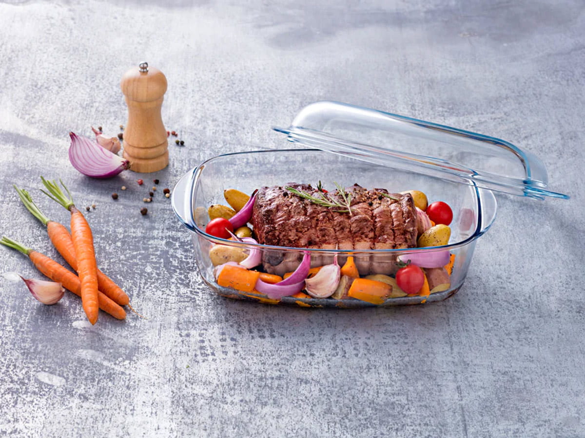 Szklane naczynie do zapiekania Pyrex. Prostokątne naczynie żaroodporne z pokrywą, naczynie do zapiekania różnego rodzaju dań. Szkło jest w pełni bezpieczne dla naszego zdrowia, pozwala na przygotowanie wartościowych posiłków nie tracąc ich cennych wartości odżywczych. Nie chłonie zapachu i smaku, jest łatwe w czyszczeniu. To absolutny must have w Twojej kuchni.