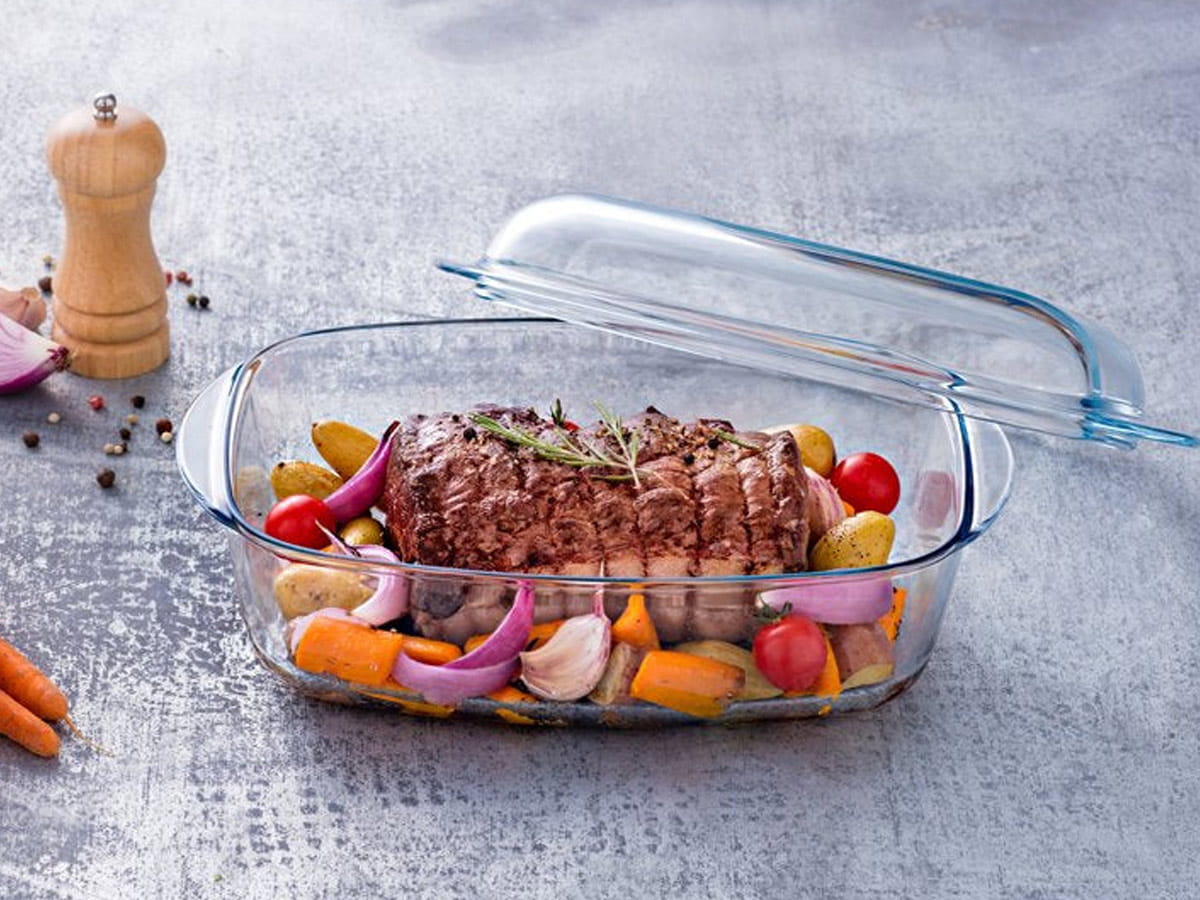 Szklane naczynie do zapiekania Pyrex. Prostokątne naczynie żaroodporne z pokrywą, naczynie do zapiekania różnego rodzaju dań. Szkło jest w pełni bezpieczne dla naszego zdrowia, pozwala na przygotowanie wartościowych posiłków nie tracąc ich cennych wartości odżywczych. Nie chłonie zapachu i smaku, jest łatwe w czyszczeniu. To absolutny must have w Twojej kuchni.