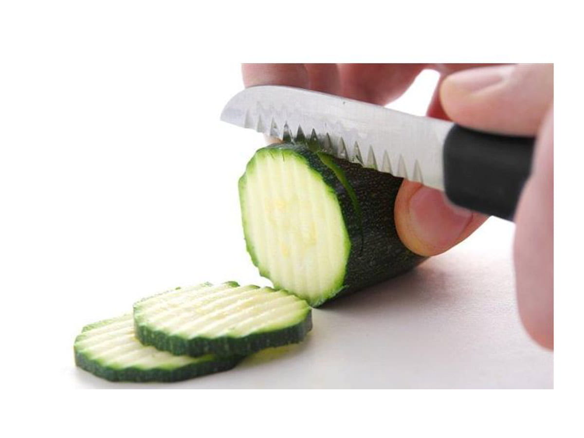 Nóż z ząbkowanym ostrzem z serii noży dekoracyjnych Hendi. Prezentowany wzór świetnie nadaje się zarówno do profesjonalnej kuchni, jak i do użytku domowego. Z naszymi nożami przygotowanie najbardziej fantazyjnych potraw będzie banalnie łatwe.