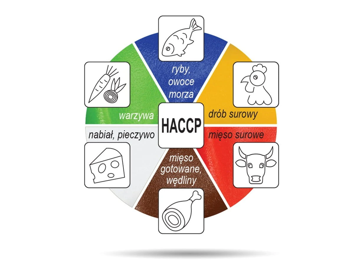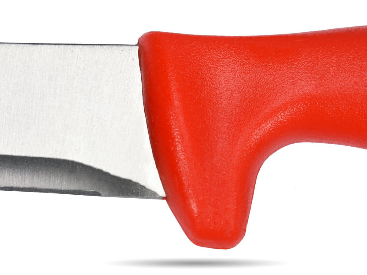Nóż wykonany jest zgodnie z normami HACCP. Posiada czerwoną rękojeść, co oznacza, że nóż dedykowany jest do mięsa surowego.