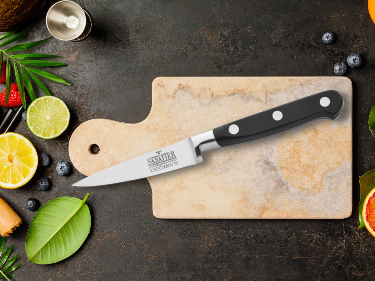 Nóż obierak V Sabatier Richardson Sheffield. Uniwersalny nóż do obierania i krojenia np. warzyw i owoców. V Sabatier to noże dla profesjonalistów - niezawodne, wyjątkowo ostre, solidne i trwałe. Ergonomiczna rękojeść pozwala na precyzyjną pracę. Doskonały nóż do gastronomii i do domu.
