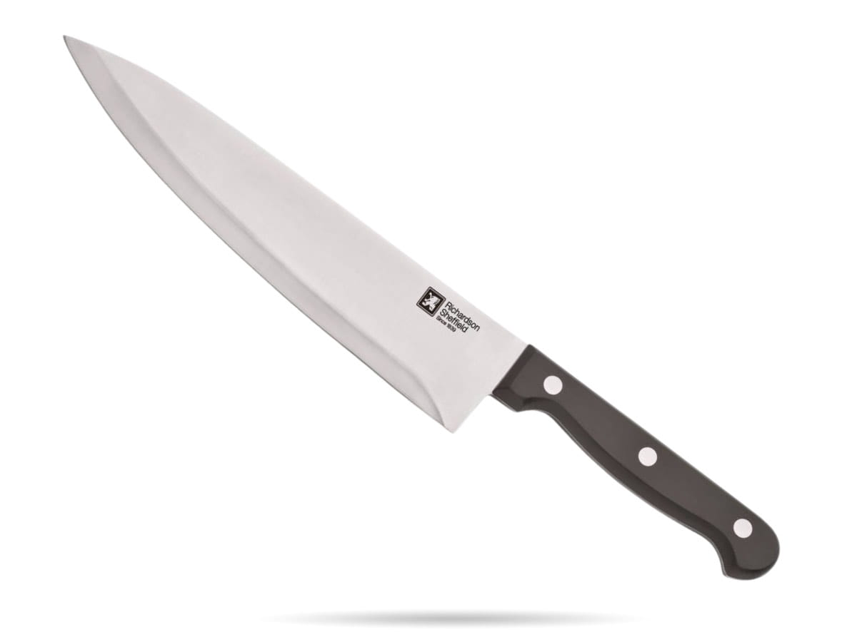 Nóż szefa kuchni Artisan Richardson Sheffield. Uniwersalny nóż kuchenny. Wykonany z wysokiej jakości stali nierdzewnej, wyjątkowo ostry, solidny i trwały. Ergonomiczna rękojeść pozwala na precyzyjną pracę. Nóż do domu i gastronomii.