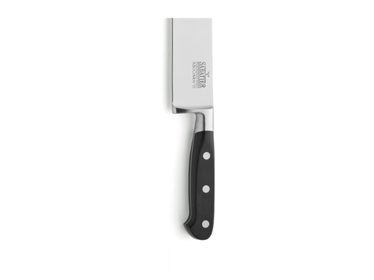 Nóż szefa kuchni V Sabatier Richardson Sheffield. Uniwersalny nóż z szerokim ostrzem - nóż do krojenia, siekania, szatkowania. V Sabatier to noże dla profesjonalistów - niezawodne, wyjątkowo ostre, solidne i trwałe. Ergonomiczna rękojeść pozwala na precyzyjną pracę. Doskonały nóż do gastronomii i do domu.