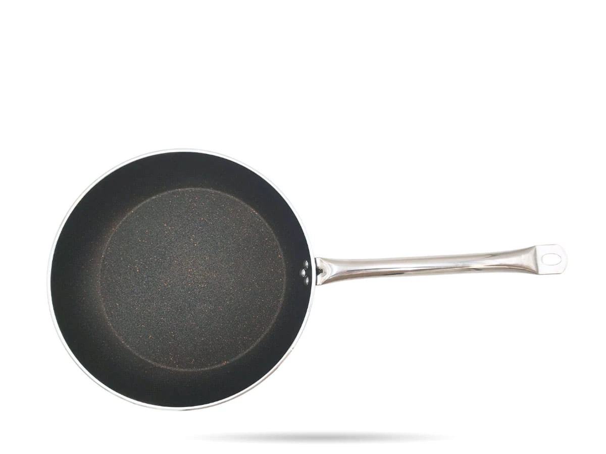 Patelnia Pintinox PRO, która spełni oczekiwania każdego szefa kuchni - sprawdzi się w branży cateringowej i gastronomicznej. Nieprzywierająca powłoka, wysoka odporność na ścieranie, uchwyt ze stali nierdzewnej, pełna indukcja - patelnia na indukcję, kuchnię gazową, ceramiczną i elektryczną.