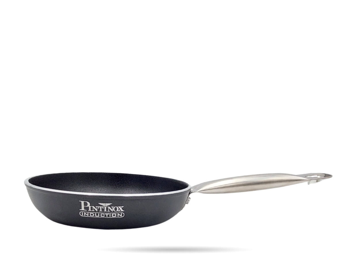 Patelnia Pintinox, patelnia aluminiowa, która spełni oczekiwania każdego szefa kuchni - sprawdzi się w branży cateringowej i gastronomicznej. Nieprzywierająca powłoka, wysoka odporność na ścieranie, uchwyt ze stali nierdzewnej, pełna indukcja - patelnia na indukcję, kuchnię gazową, ceramiczną i elektryczną.