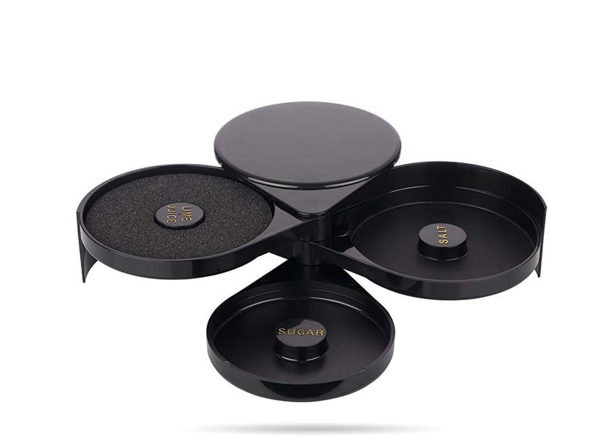 Krustownica barmańska APS z trzema przegródkami – gąbka na sok z limonki, miejsce na sól i cukier. Wykonana z trwałego, czarnego tworzywa sztucznego, o kompaktowych wymiarach 20 x 15,5 cm. Idealna do dekorowania krawędzi szklanek w barze.