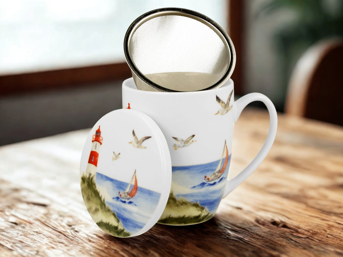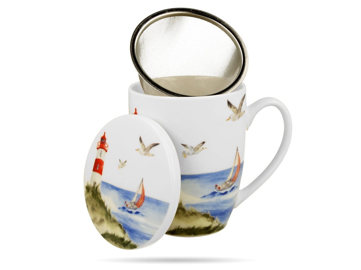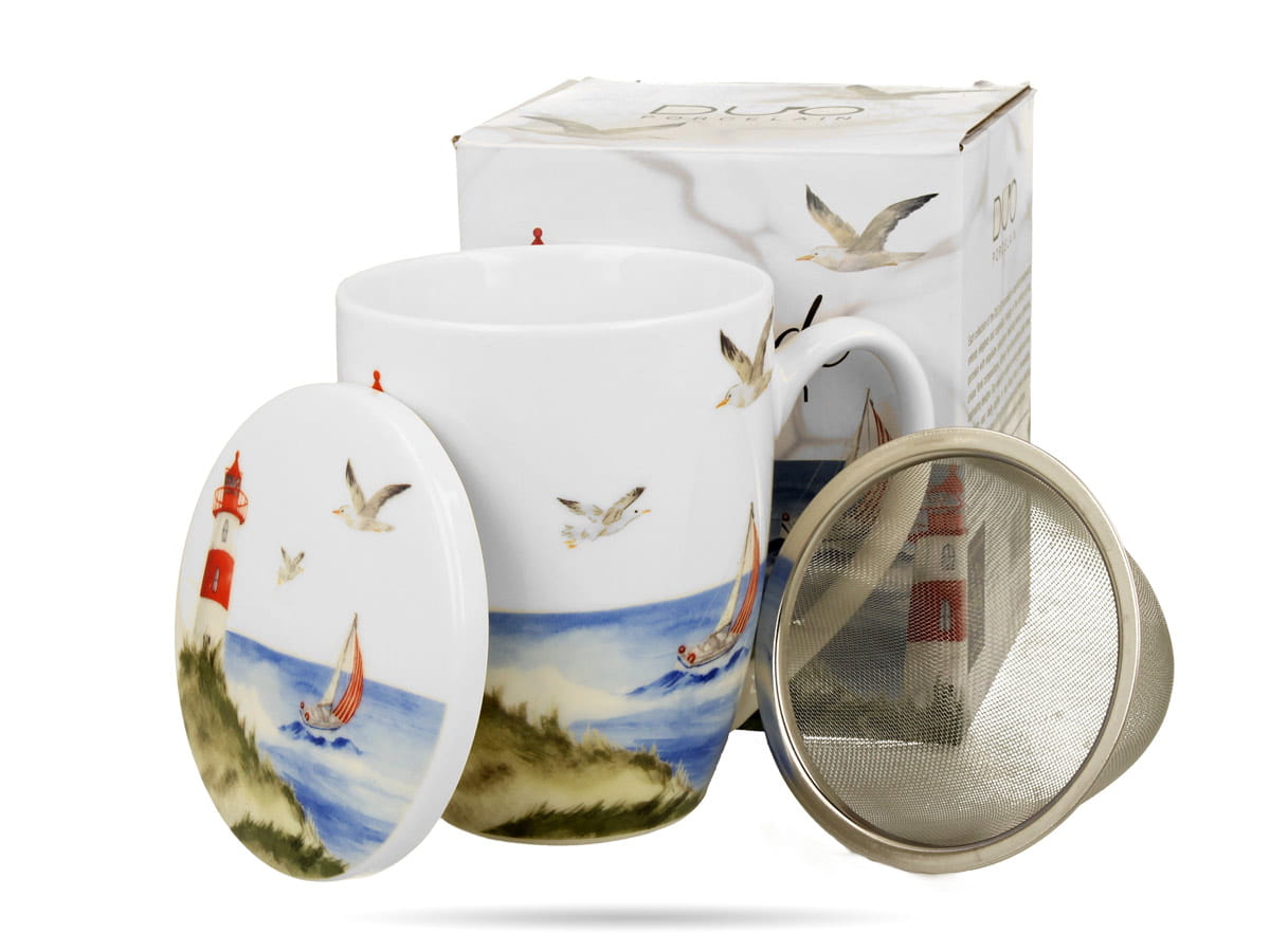 Kubek Latarnia morska z zaparzaczem i pokrywką 360 ml porcelana DUO