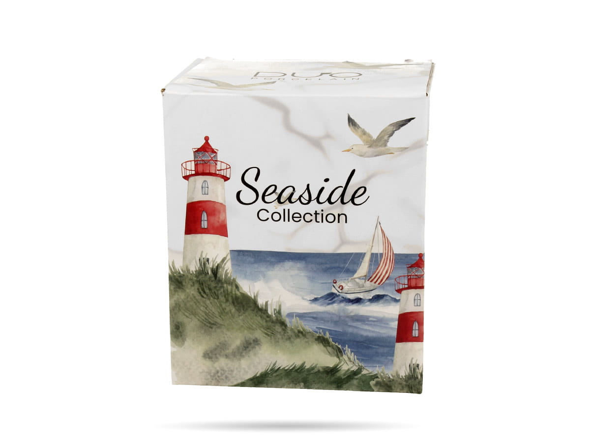 - idealny kubek dla miłośników morskich motywów, zdobiony delikatną grafiką latarni morskiej nad błękitnym bałtykiem