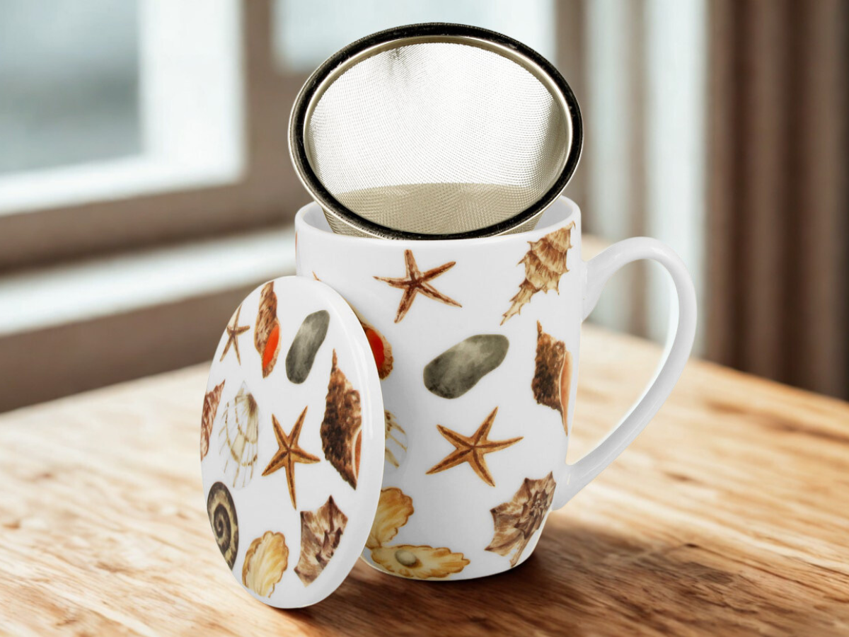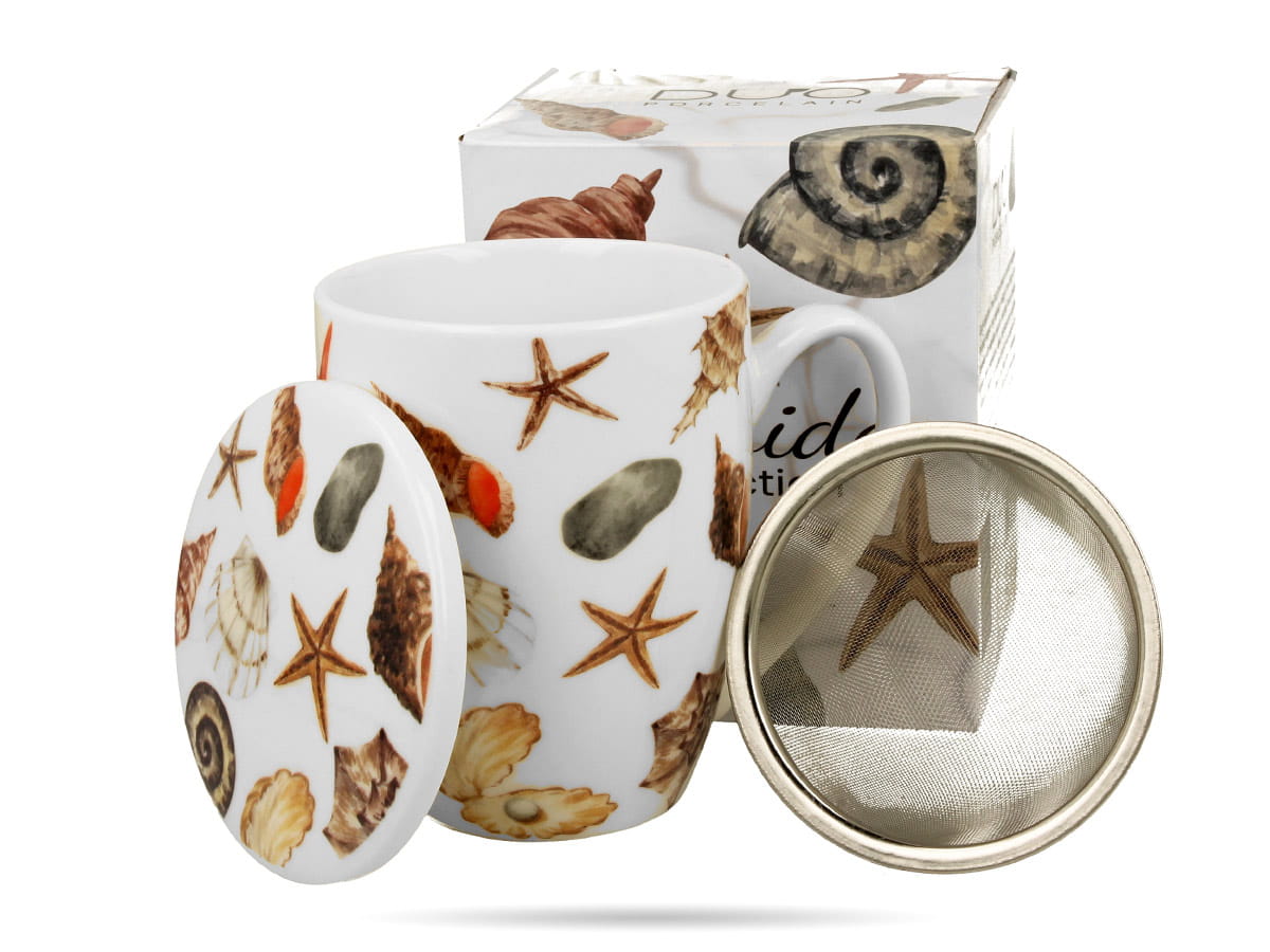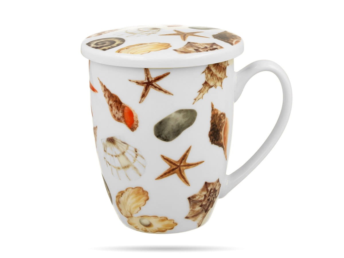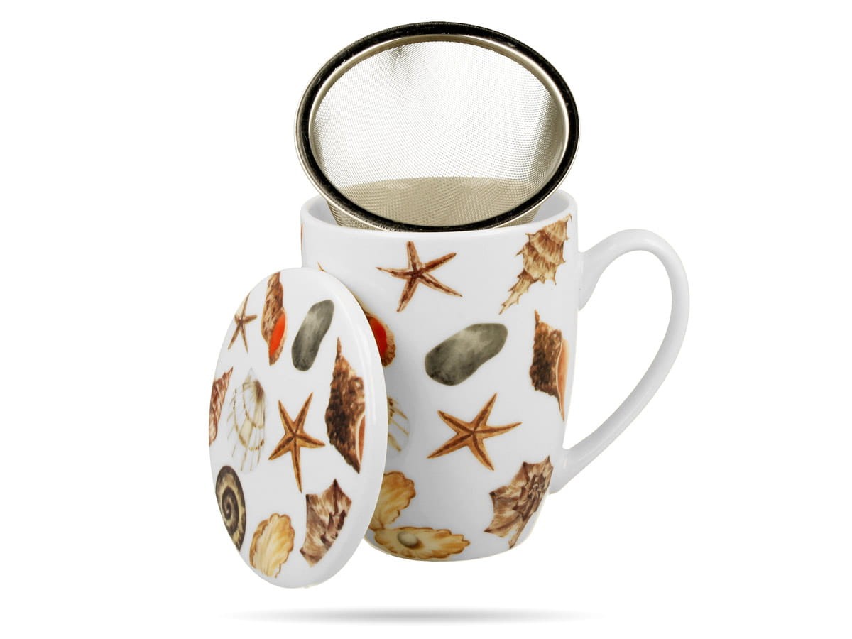 Kubek Muszle z zaparzaczem i pokrywką 360 ml porcelana DUO