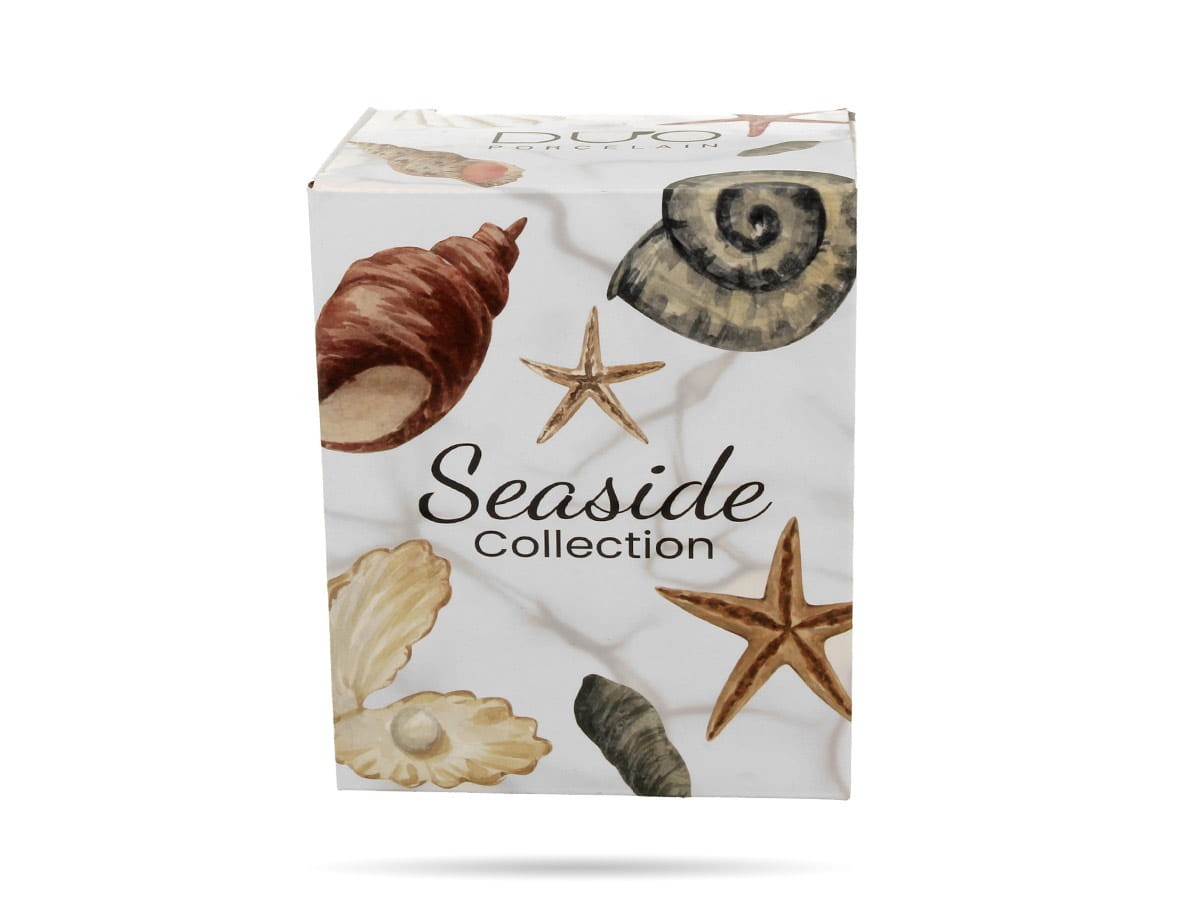 - idealny kubek dla miłośników morskich motywów, zdobiony delikatną grafiką różnorodnych muszli morskich