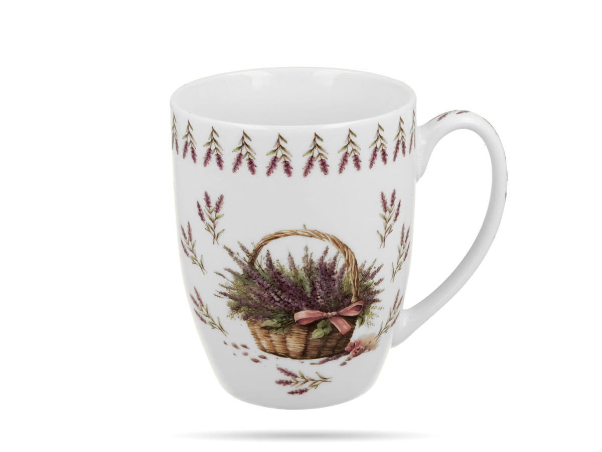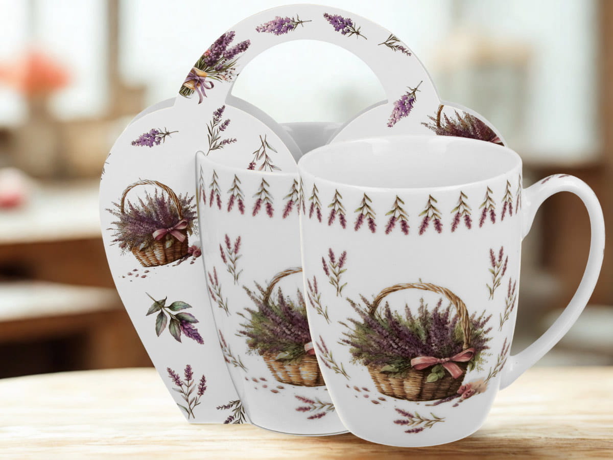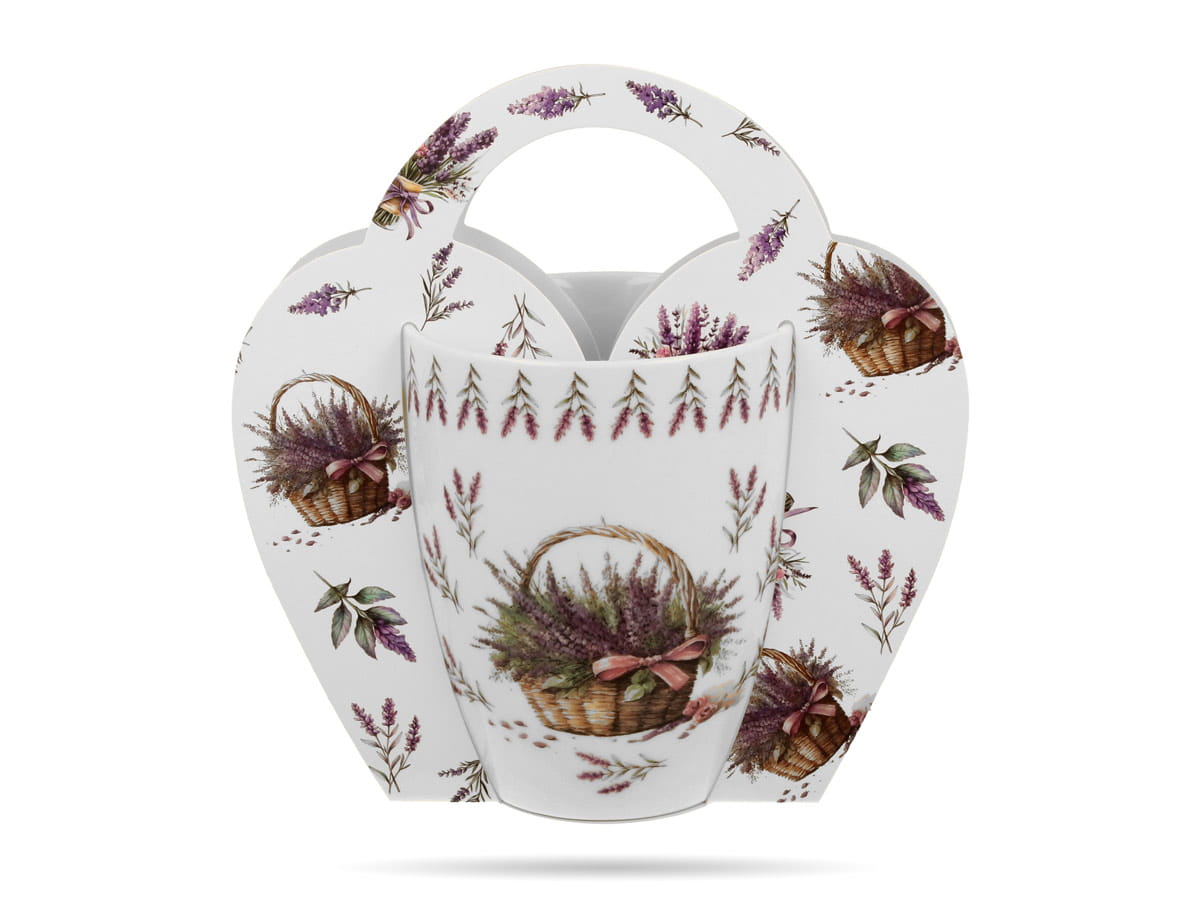 Kubek w koszyczku Kosze kwiatów Lawenda 350 ml porcelana na prezent DUO